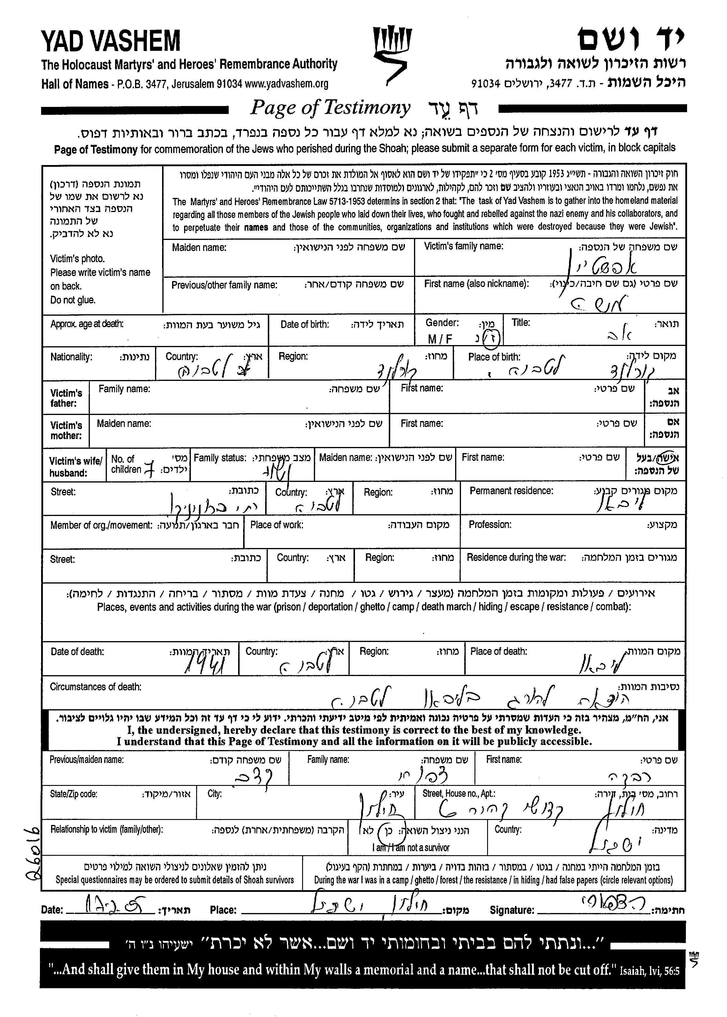 Moshe wurde in der Schoah ermordet. Todesort: Libau, Lettland.