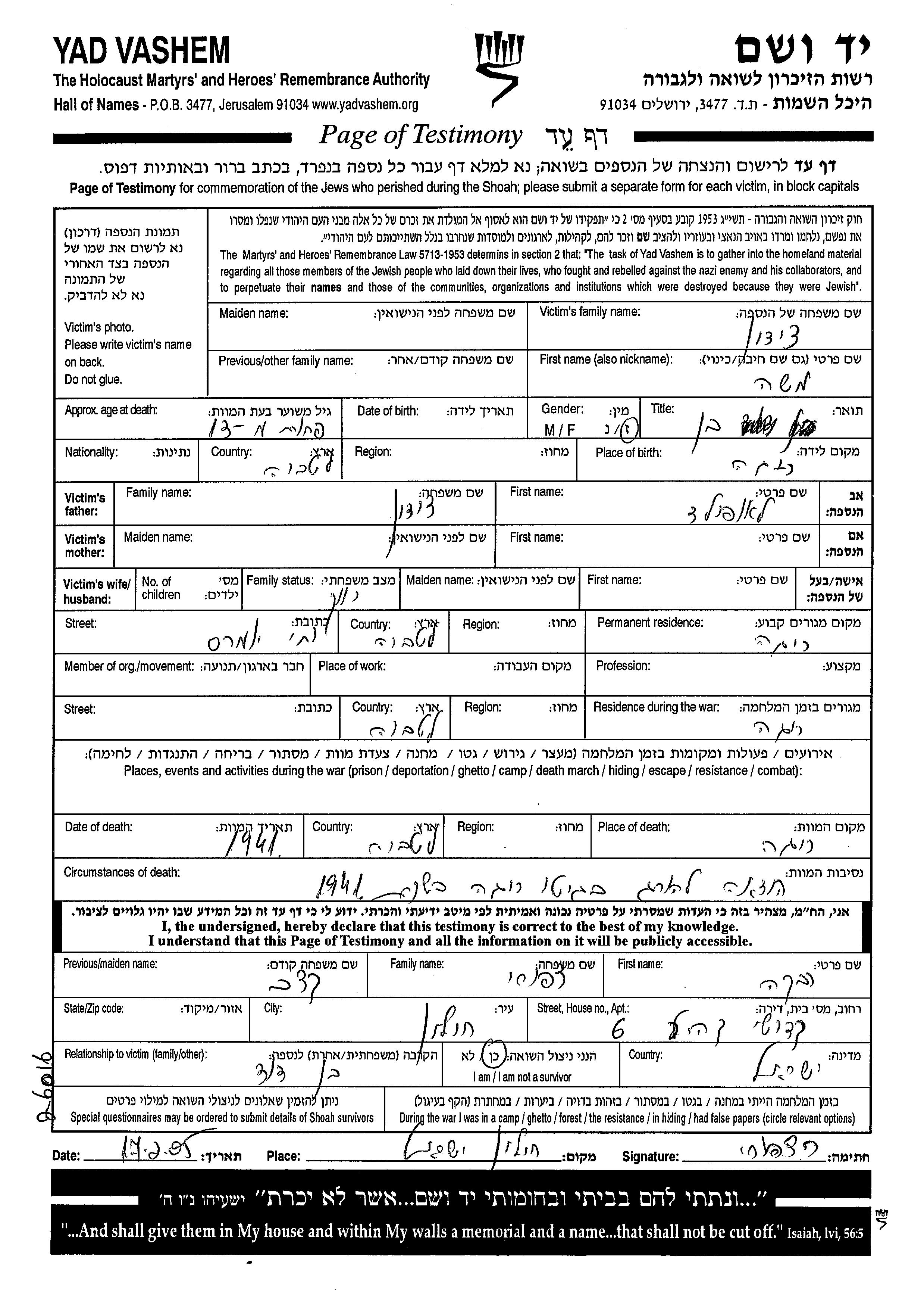 Moshe wurde in der Schoah ermordet. Todesort: Riga, Lettland im Jahr 1941.