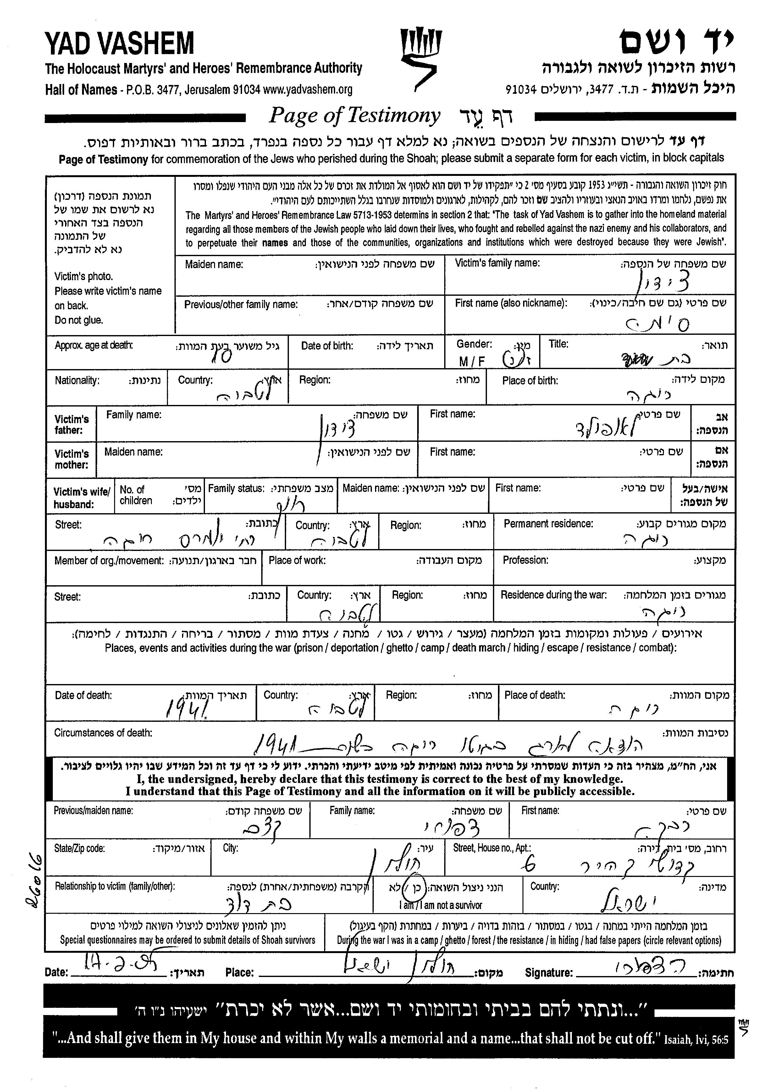 Sima wurde in der Schoah ermordet. Todesort: Riga, Lettland im Jahr 1941.