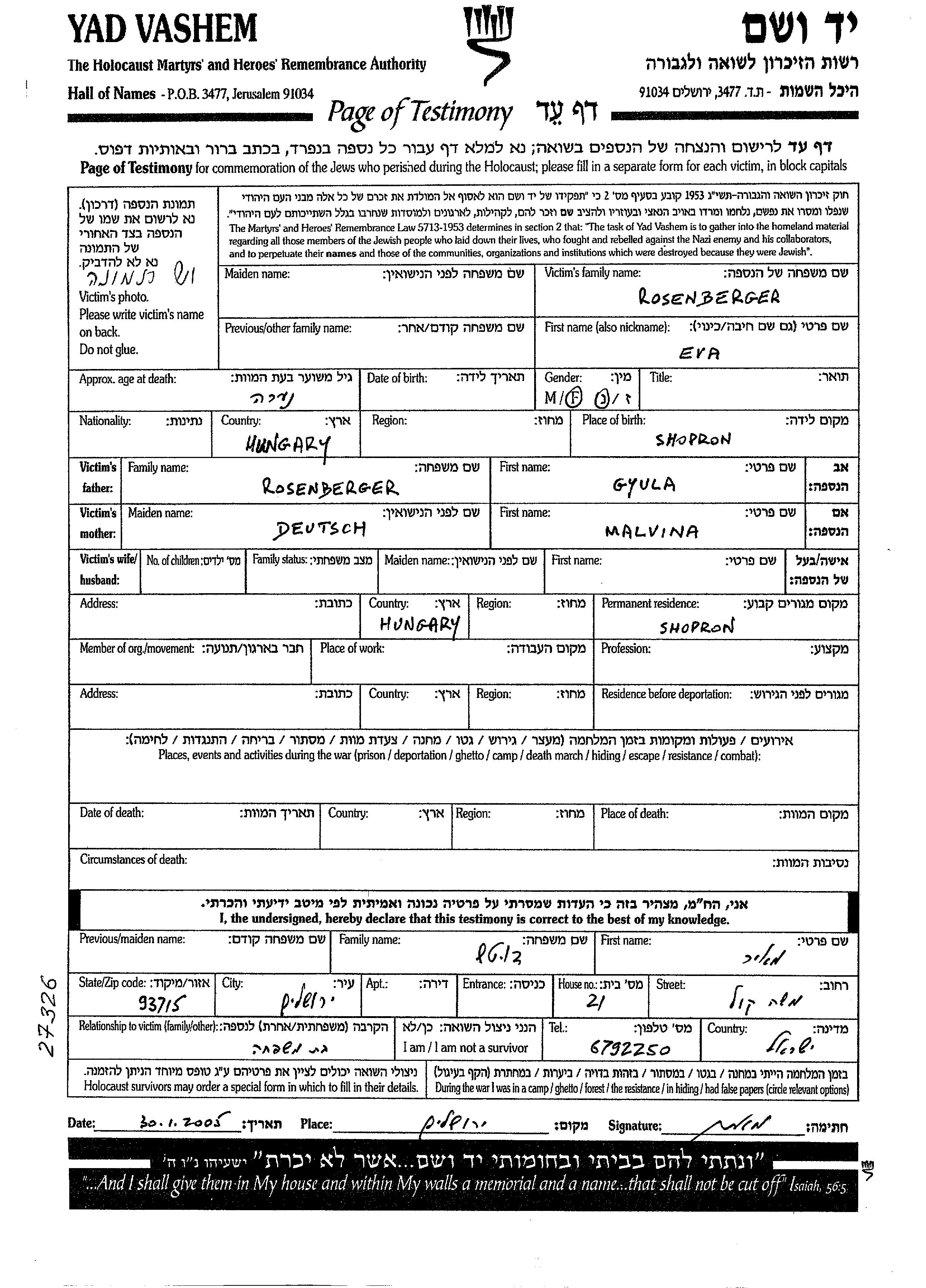 Rosenberger Eva 1926 Sopron, Ungarn Verfolgtenliste
