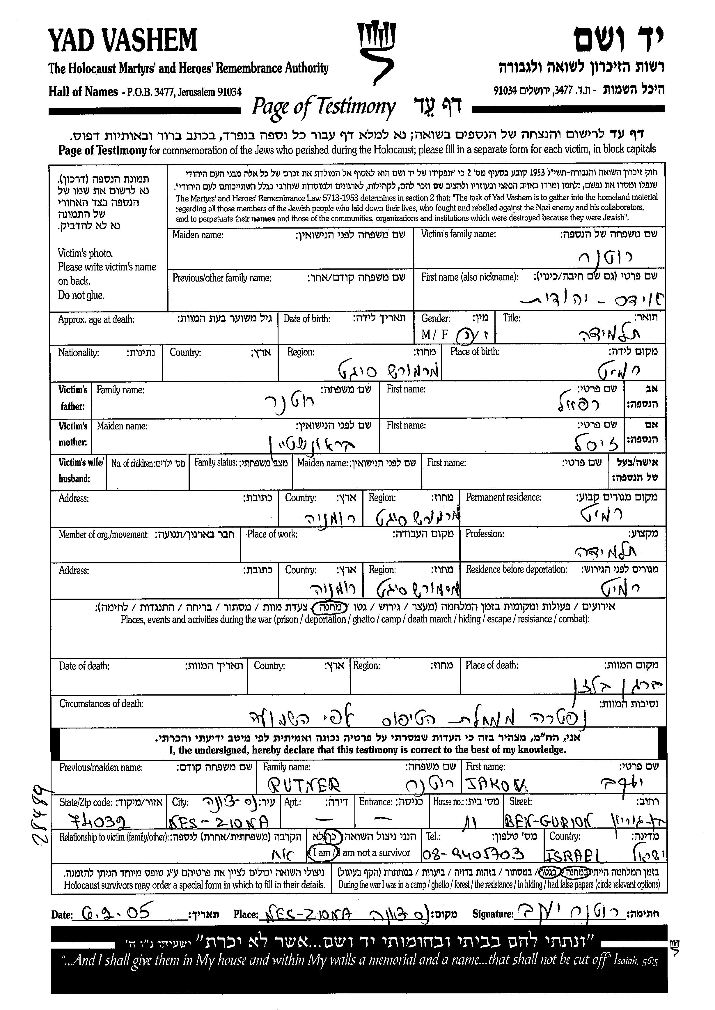 Yehudit Rutner wurde in Remit, Rumänien geboren. Sie war die Tochter von Rafael und Zysl, geb. Braunshtein. Vor dem Zweiten Weltkrieg lebte sie in Remit, Rumänien. Während des Krieges war sie in Remit, Rumänien.