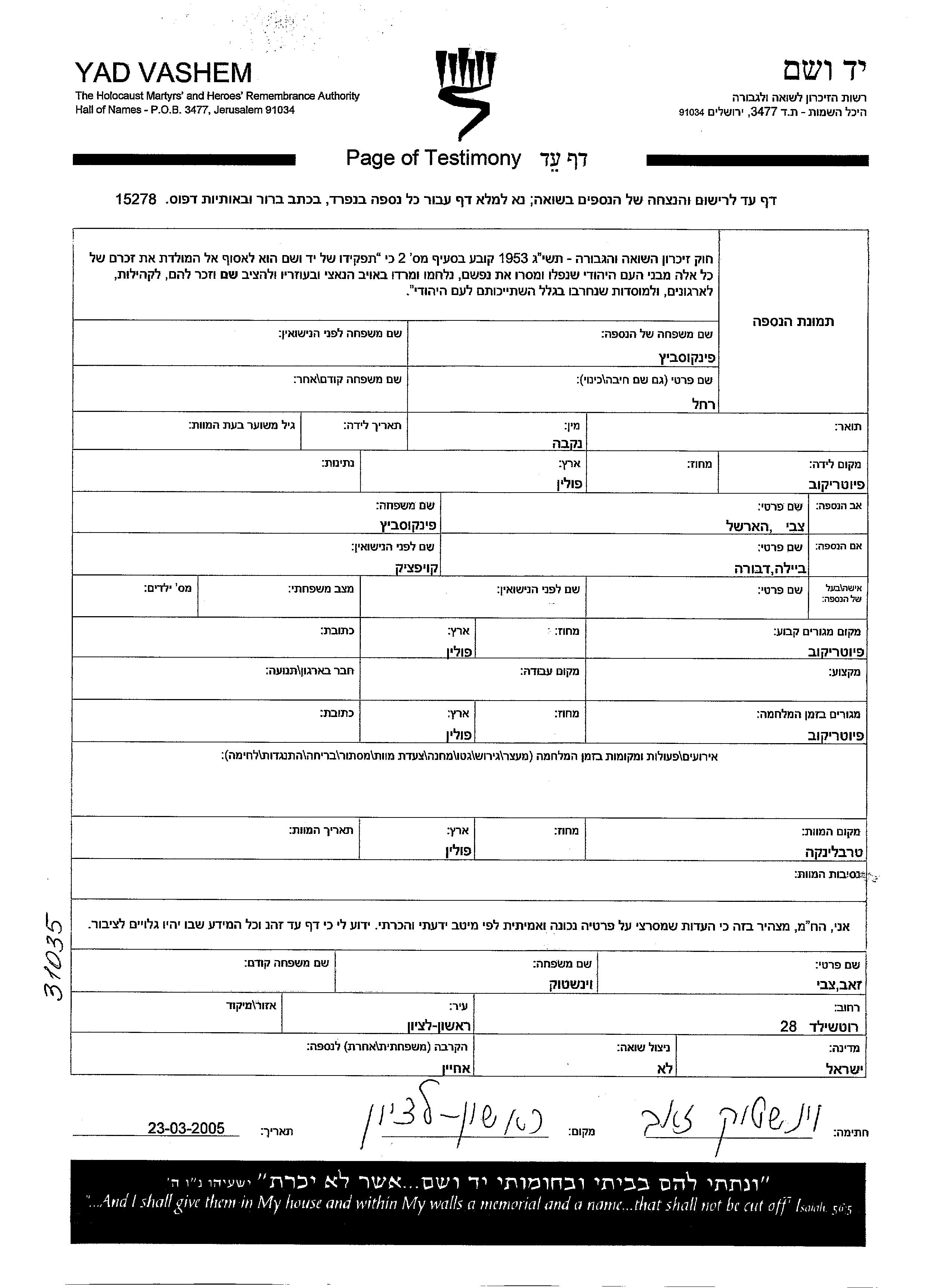 Rakhel wurde in der Schoah ermordet. Todesort: Treblinka, Polen.