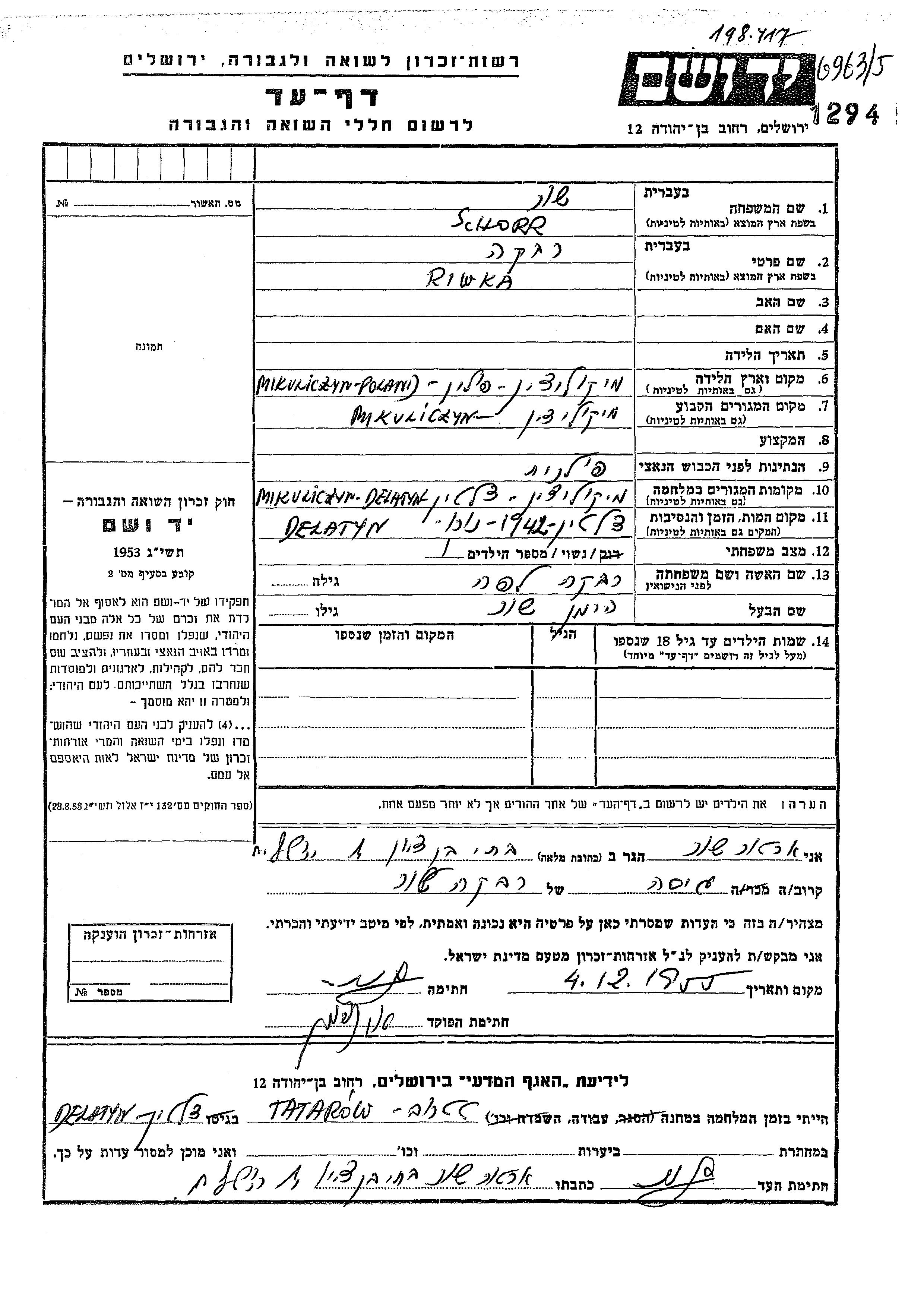 Riwka wurde in der Schoah ermordet. Todesort: Delatyn, Polen im Jahr 1942.