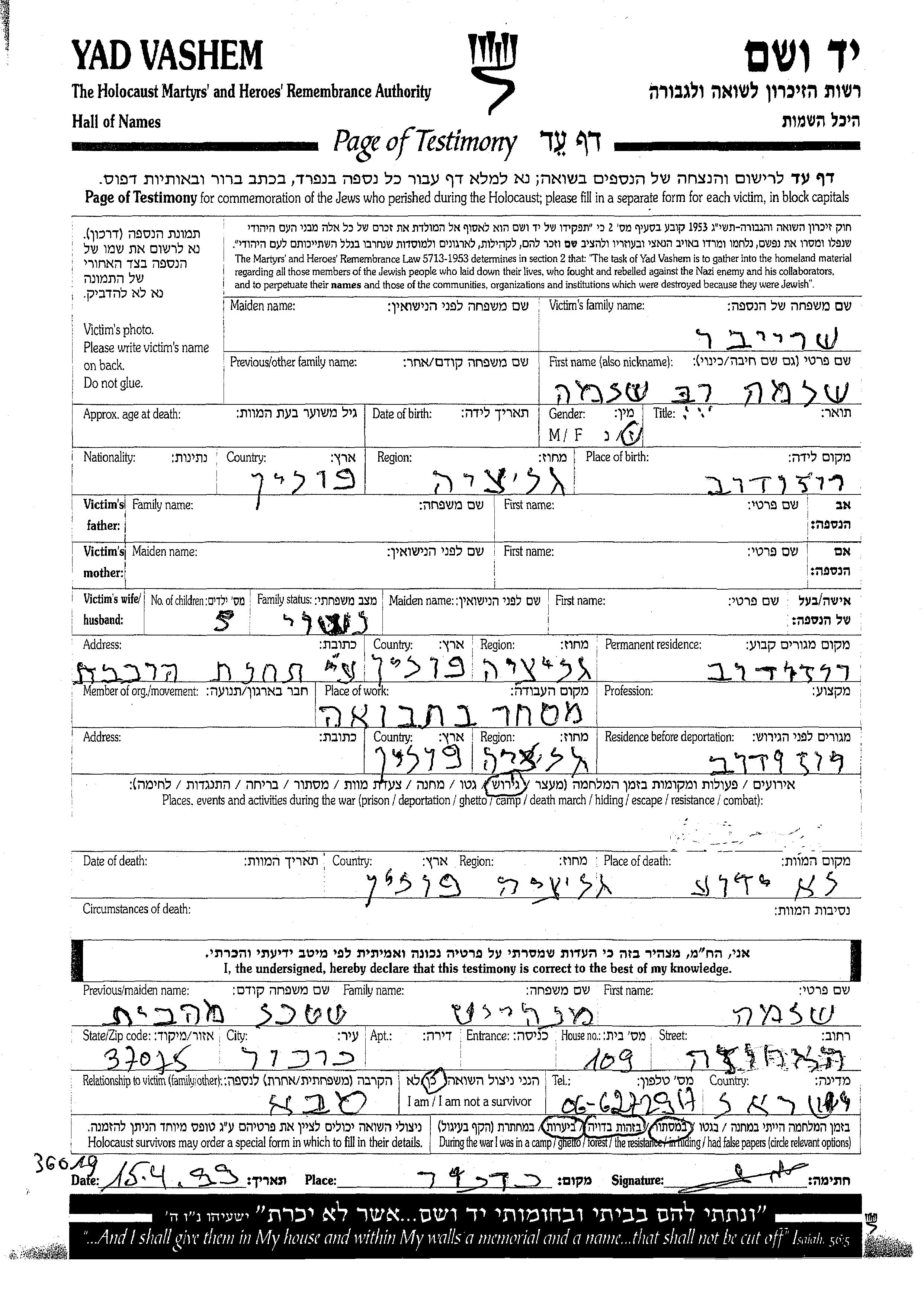 Shlomo wurde in der Schoah ermordet. Todesort: Galizien Region, Polen.