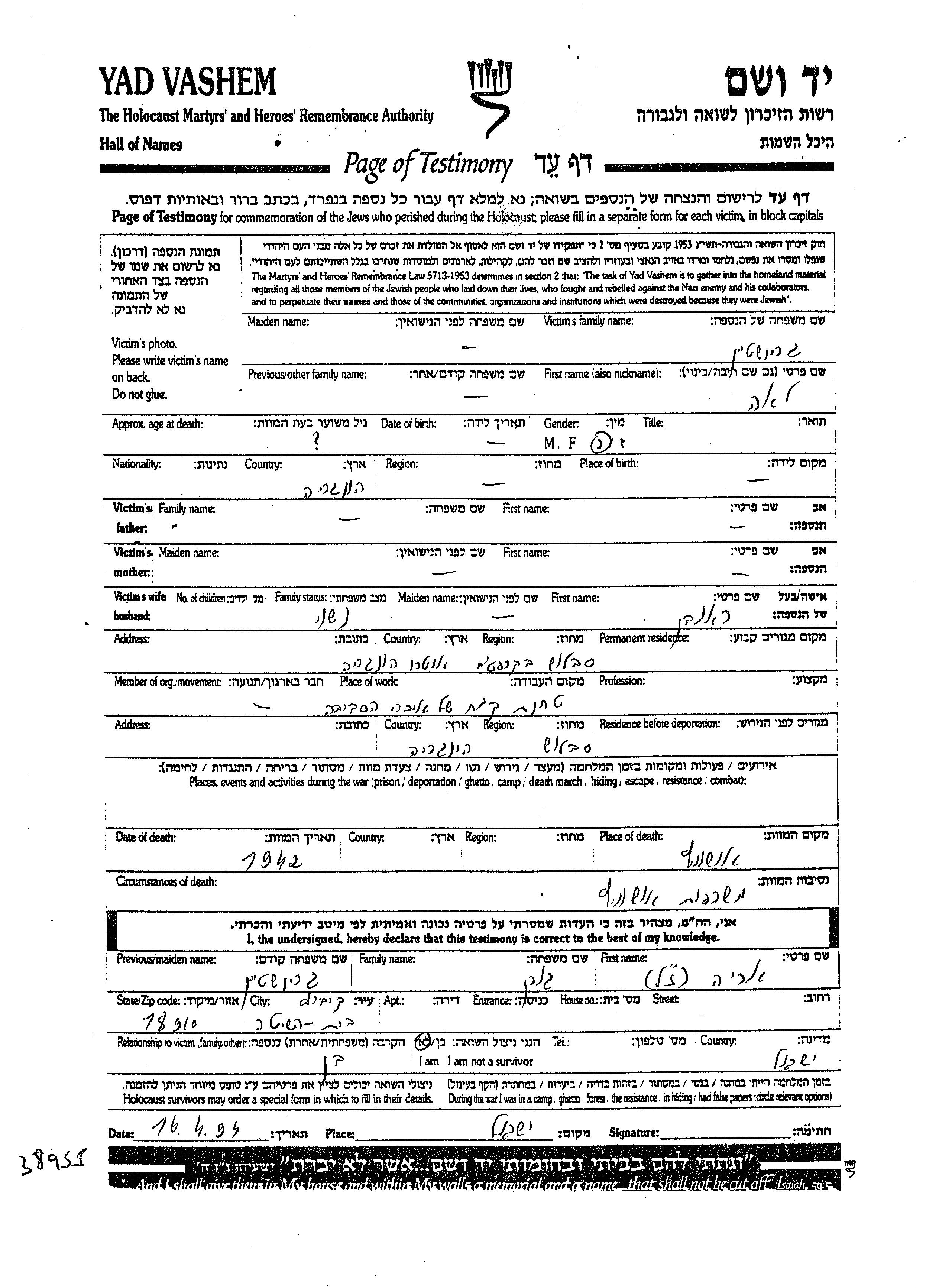 Yad Vashem - Gedenkblätter Sammlung