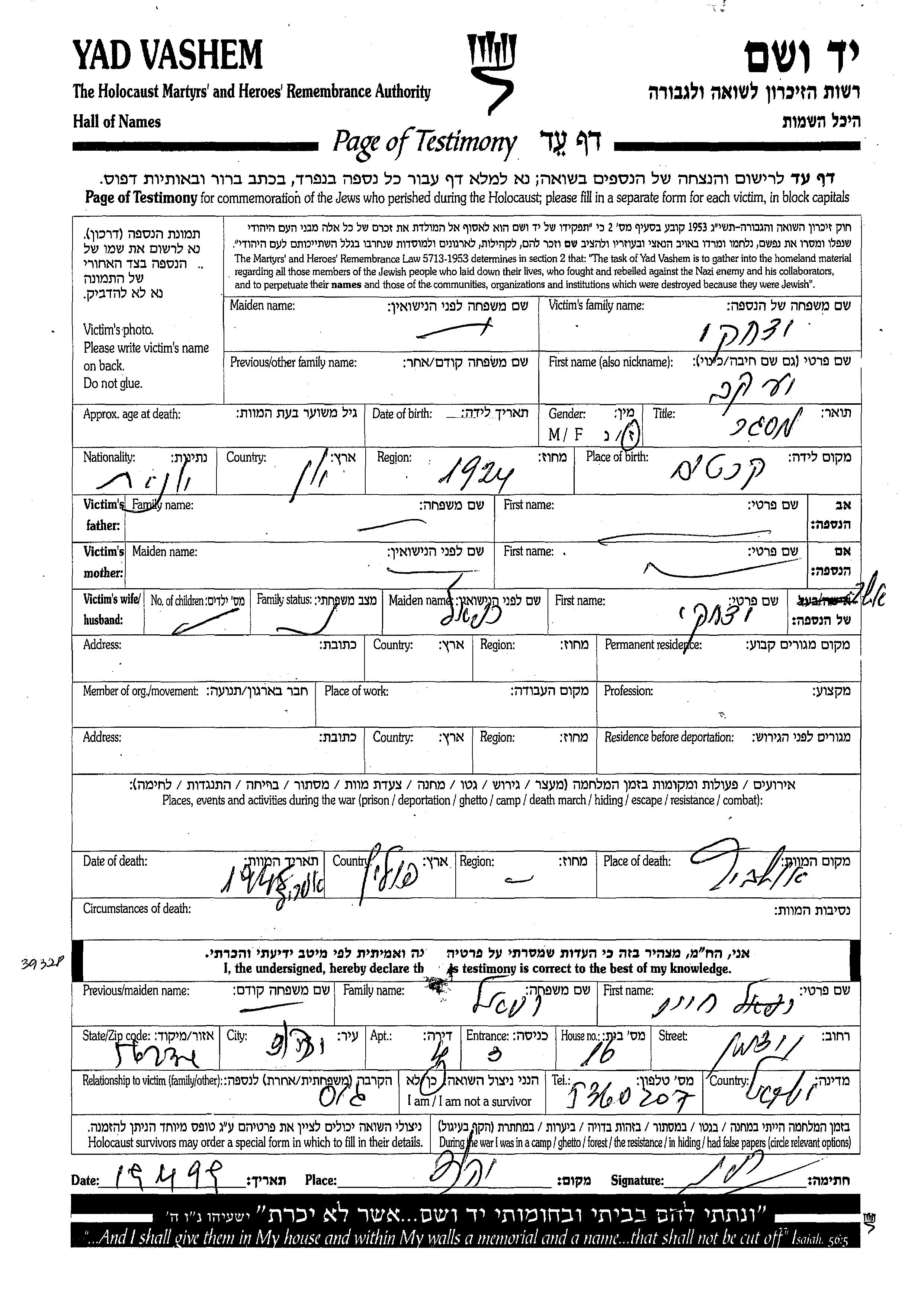Yaakov wurde in der Schoah ermordet. Todesort: Auschwitz, Polen im Jahr 04/1945.
