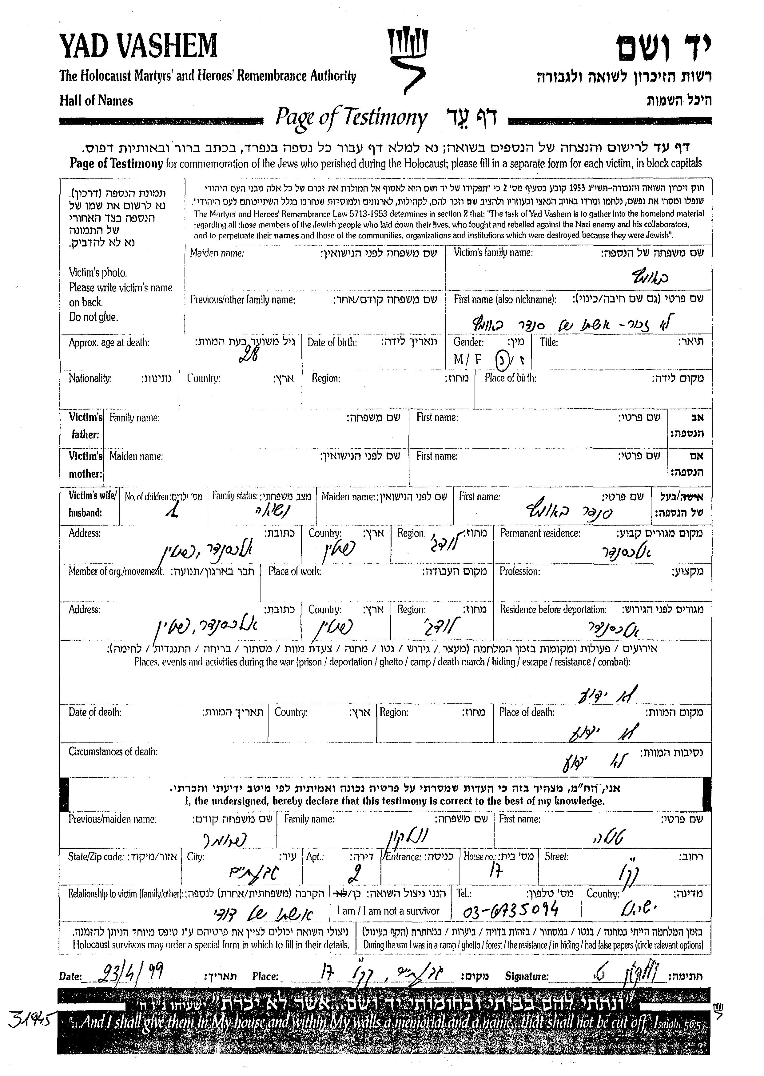 Vorname unbekannt Baumatz. Sie war mit Sender Verheiratet. Vor dem Zweiten Weltkrieg lebte sie in Aleksander, Polen. Während des Krieges war sie in Aleksander, Polen.