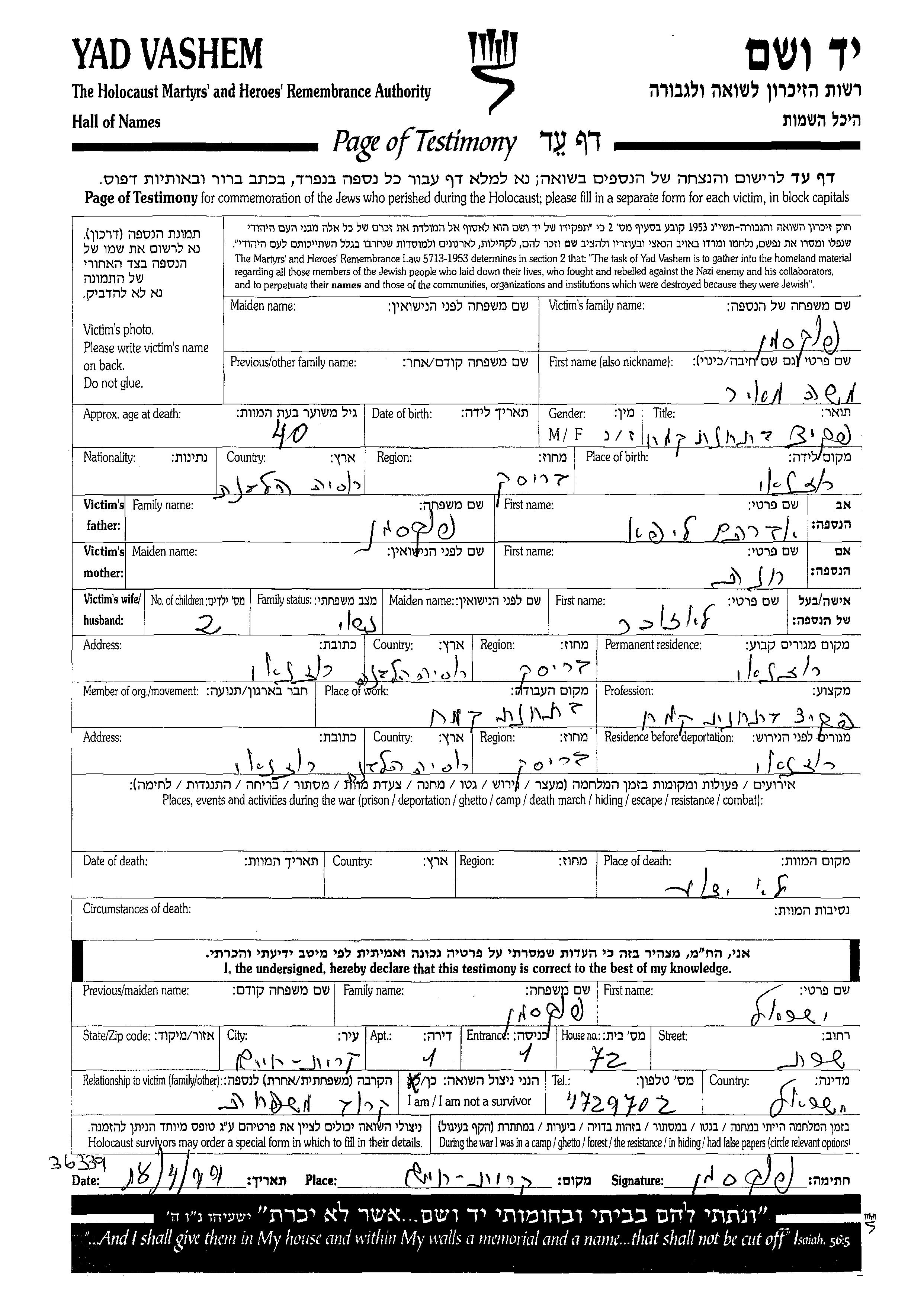 Moshe Meir Fuksman wurde in Rozna, Polen geboren. Er war der Sohn von Lipa Avraham und Khana. Er war Angestellter in einer mühle und Verheiratet. Vor dem Zweiten Weltkrieg lebte er in Rozna, Polen. Während des Krieges war er in Rozna, Polen.