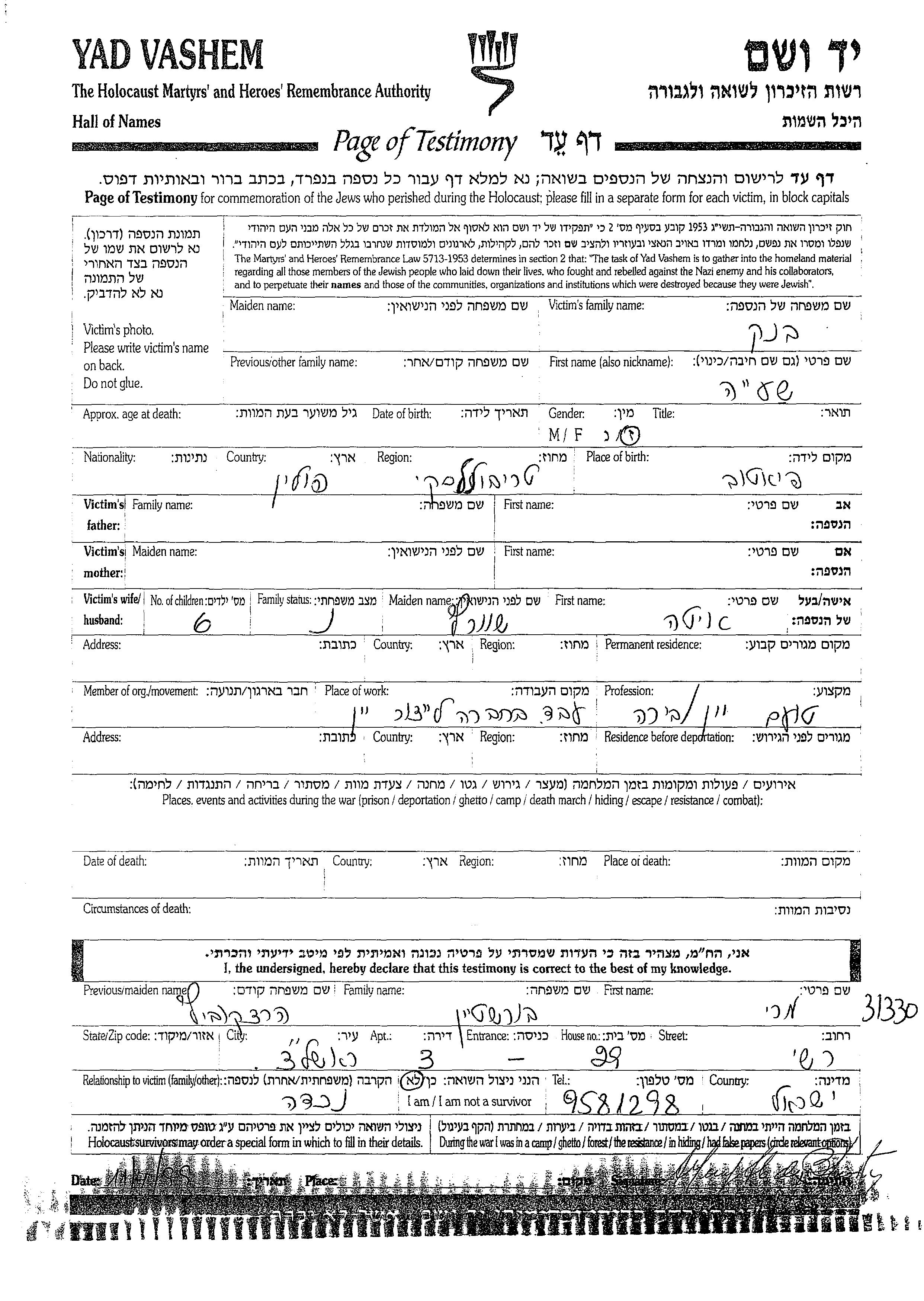 Shaia Bank wurde in Piotkov Tribunalski, Polen geboren. Er war Weinexperte und mit Ita, geb. Shvartz Verheiratet. Vor dem Zweiten Weltkrieg lebte er in Piotkov Tribunalski, Polen.
