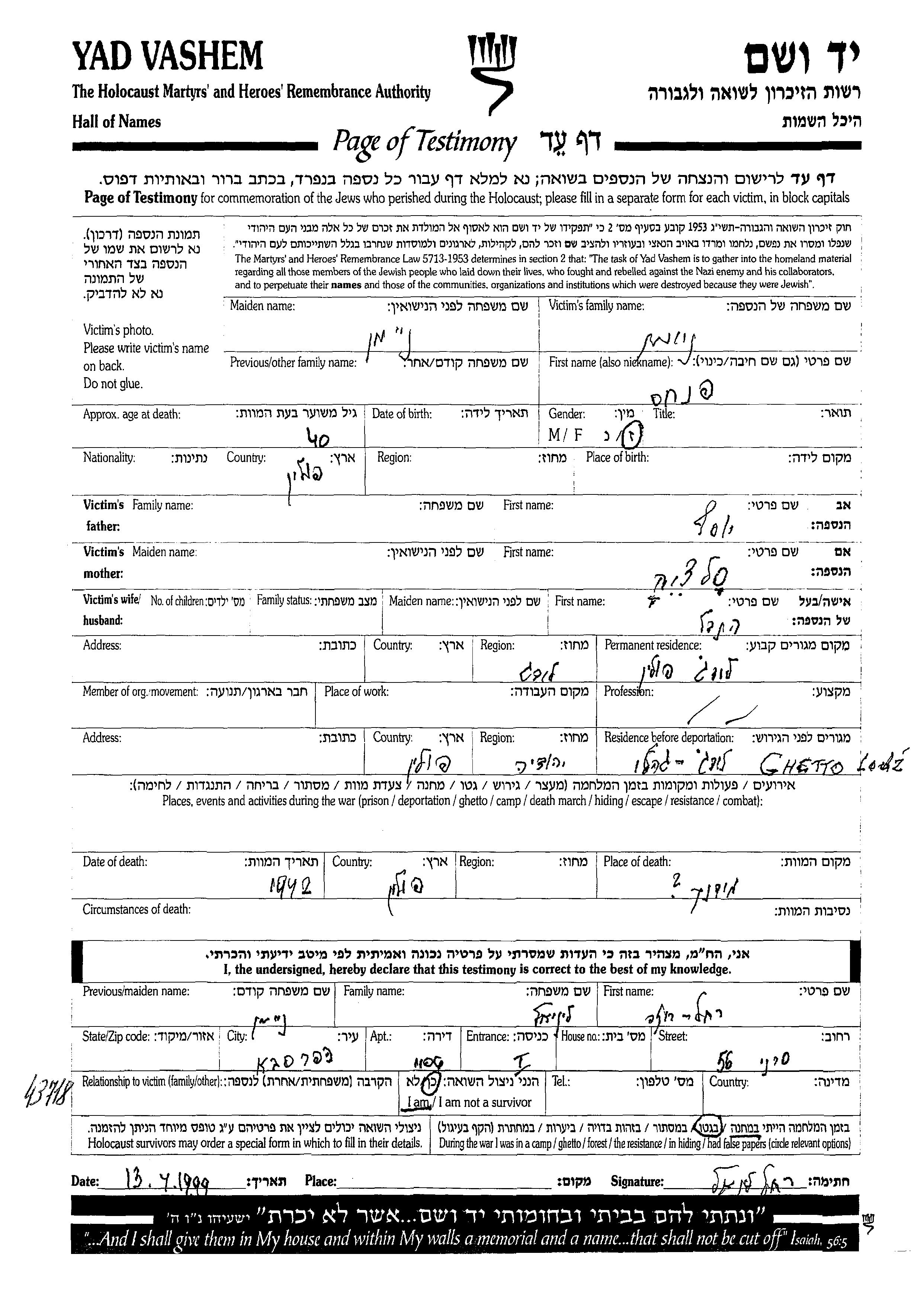 Pinkhas wurde in der Schoah ermordet. Todesort: Majdanek, Polen im Jahr 1942.
