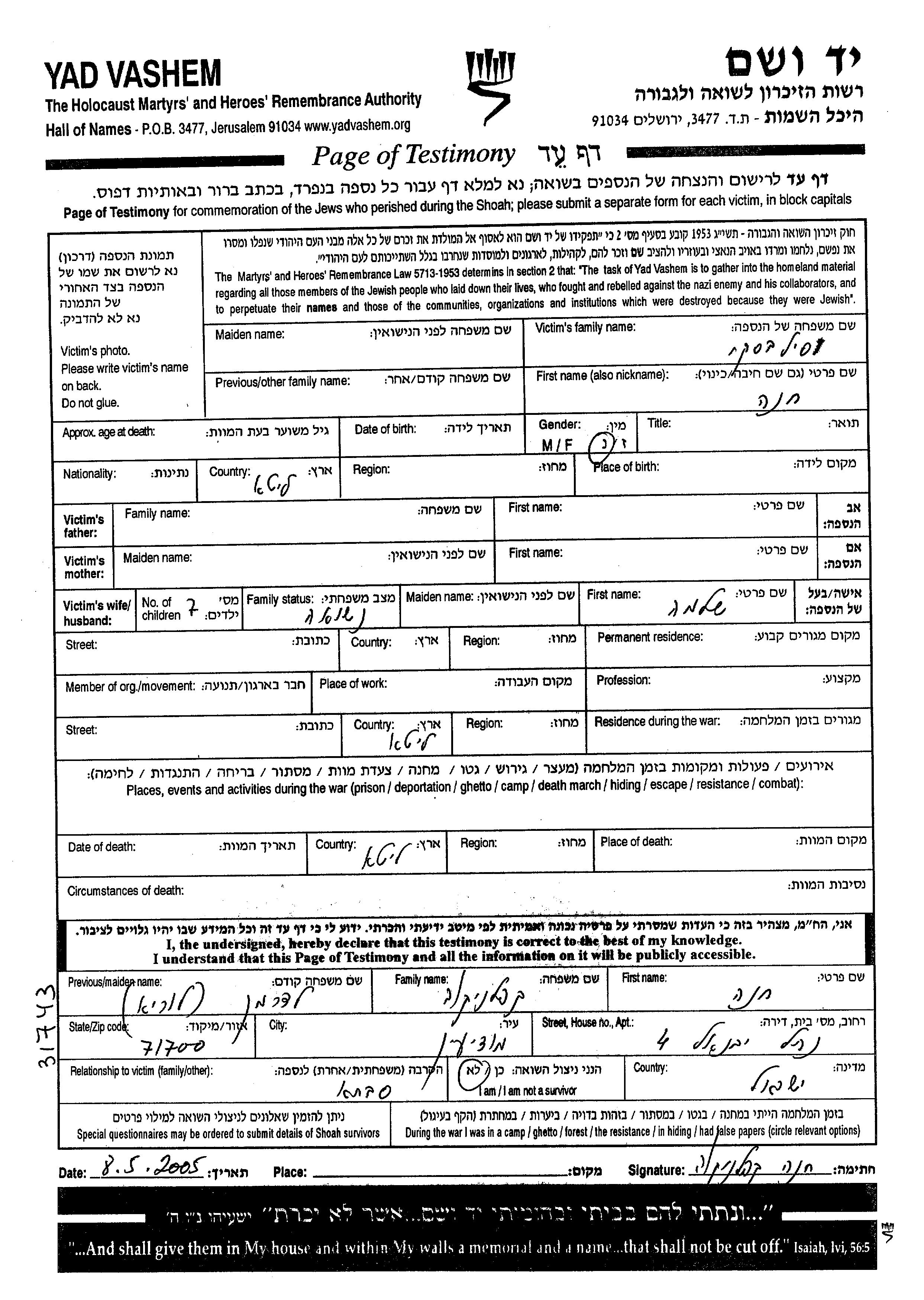 Khana wurde in der Schoah ermordet. Todesort: Litauen.