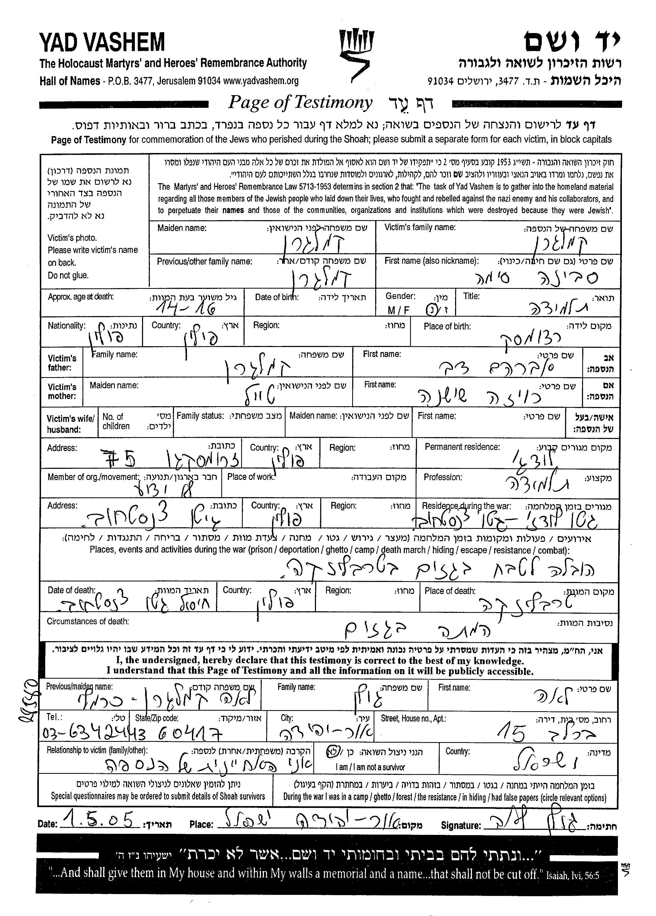 Sabina Sima wurde in der Schoah ermordet. Todesort: Treblinka, Polen.