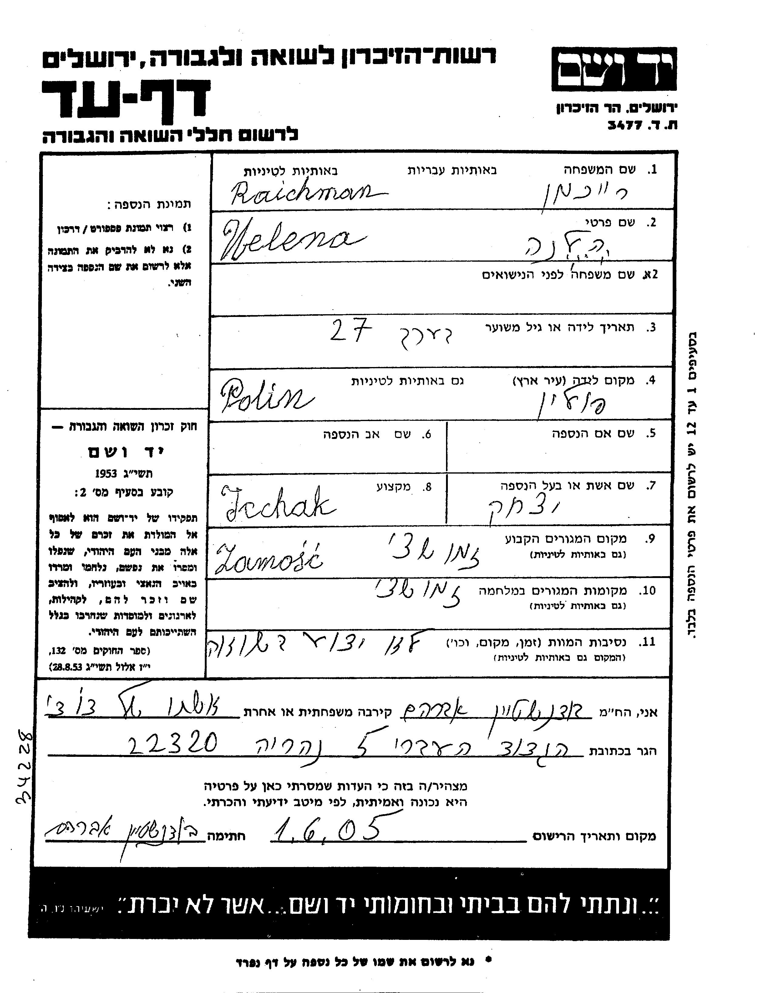 Reikhman Helena Zamosc, Polen Gedenkblatt