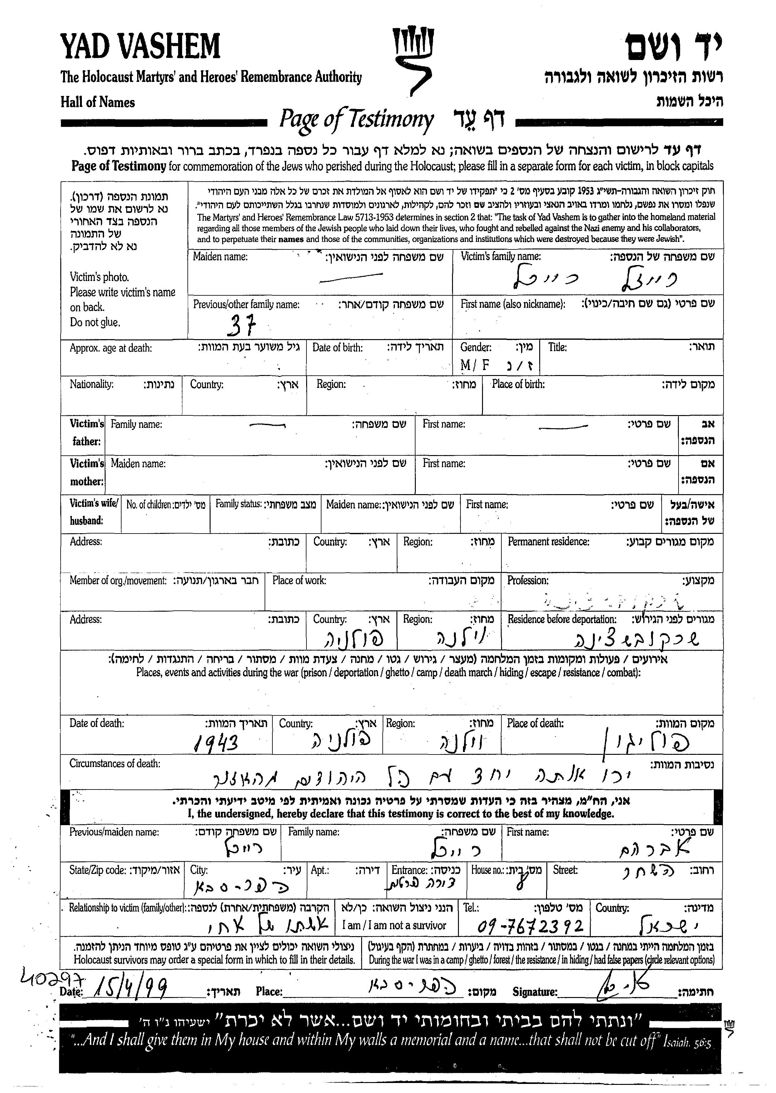 Reizl wurde in der Schoah ermordet. Todesort: Polygon, Massaker Ort im Jahr 1943.