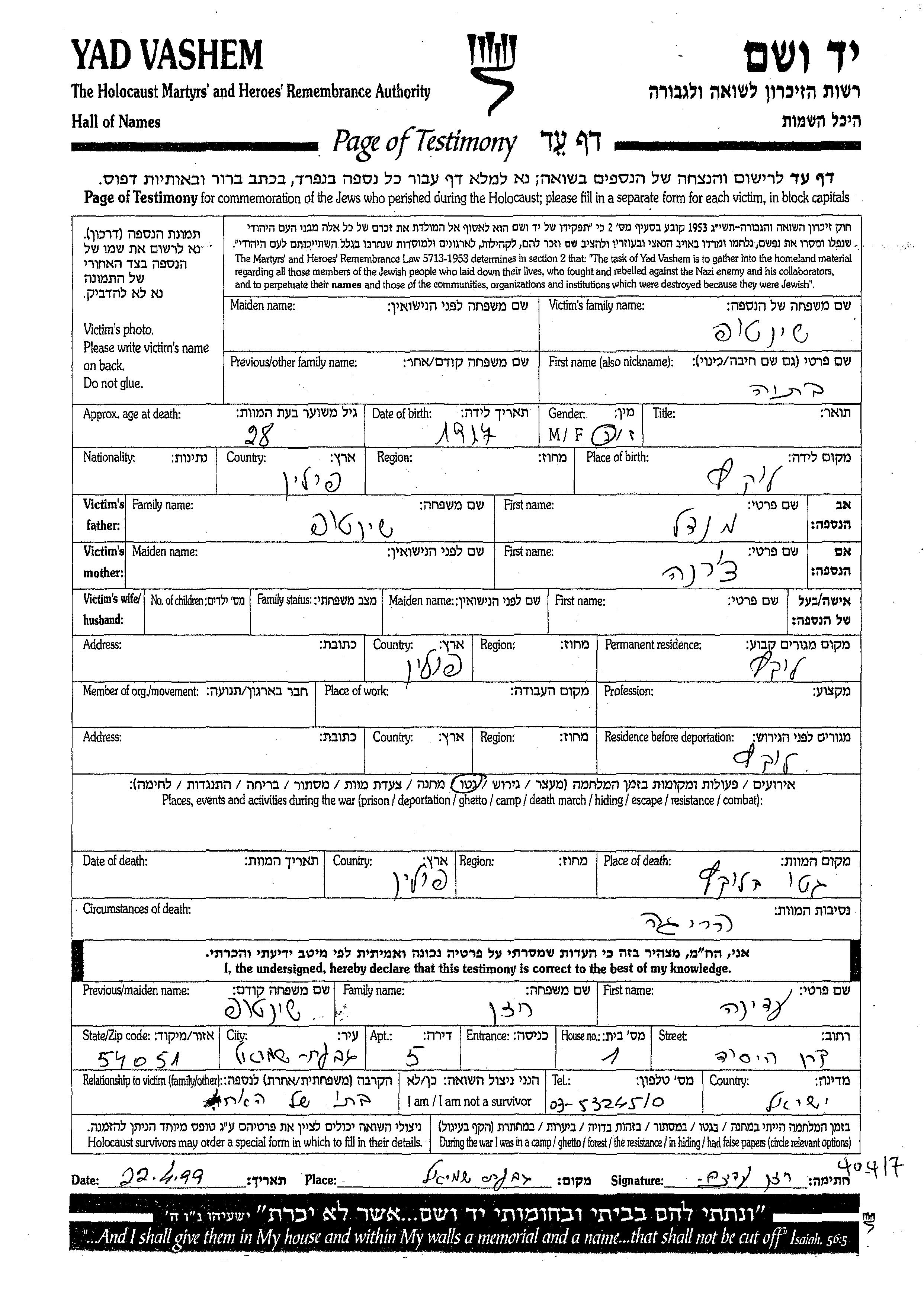 Juden wurden in der Schoah auf verschiedenste Weisen ermordet, unter anderem: Vergasen, Erschiessen, lebendig verbrannt werden, lebendig begraben werden, Tod durch Erschöpfung durch Zwangsarbeit, Epidemien, mangels jeder hygienischer Bedingung oder dem Fehlen medizinischer Versorgung. Manche Juden nahmen sich das Leben, um der Festnahme und weiterer Verfolgung zu entgehen oder ihr hoffnungsloses, nicht nachlassendes Leiden zu beenden.