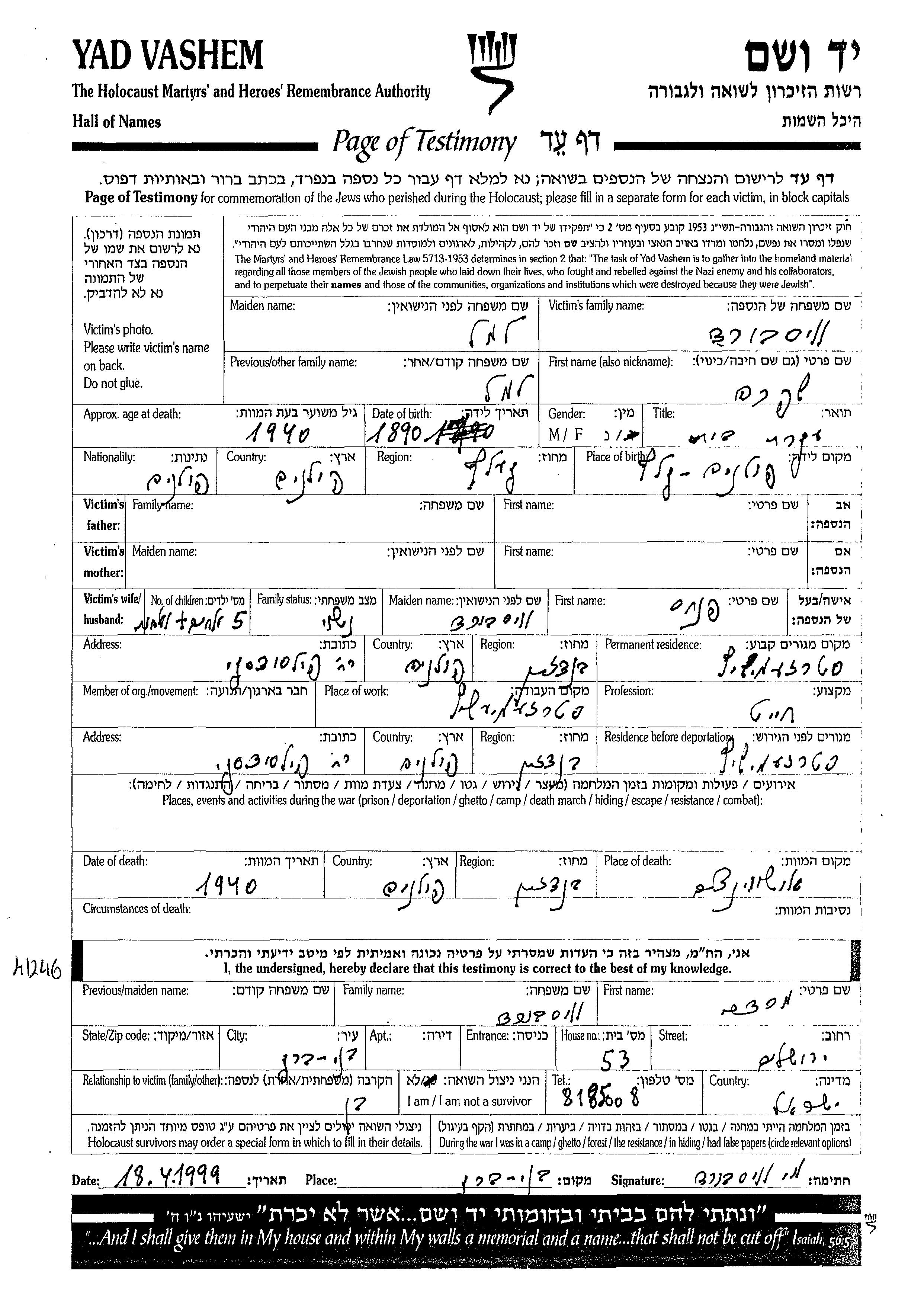 Shifra wurde in der Schoah ermordet. Todesort: Auschwitz, Polen im Jahr 1940.