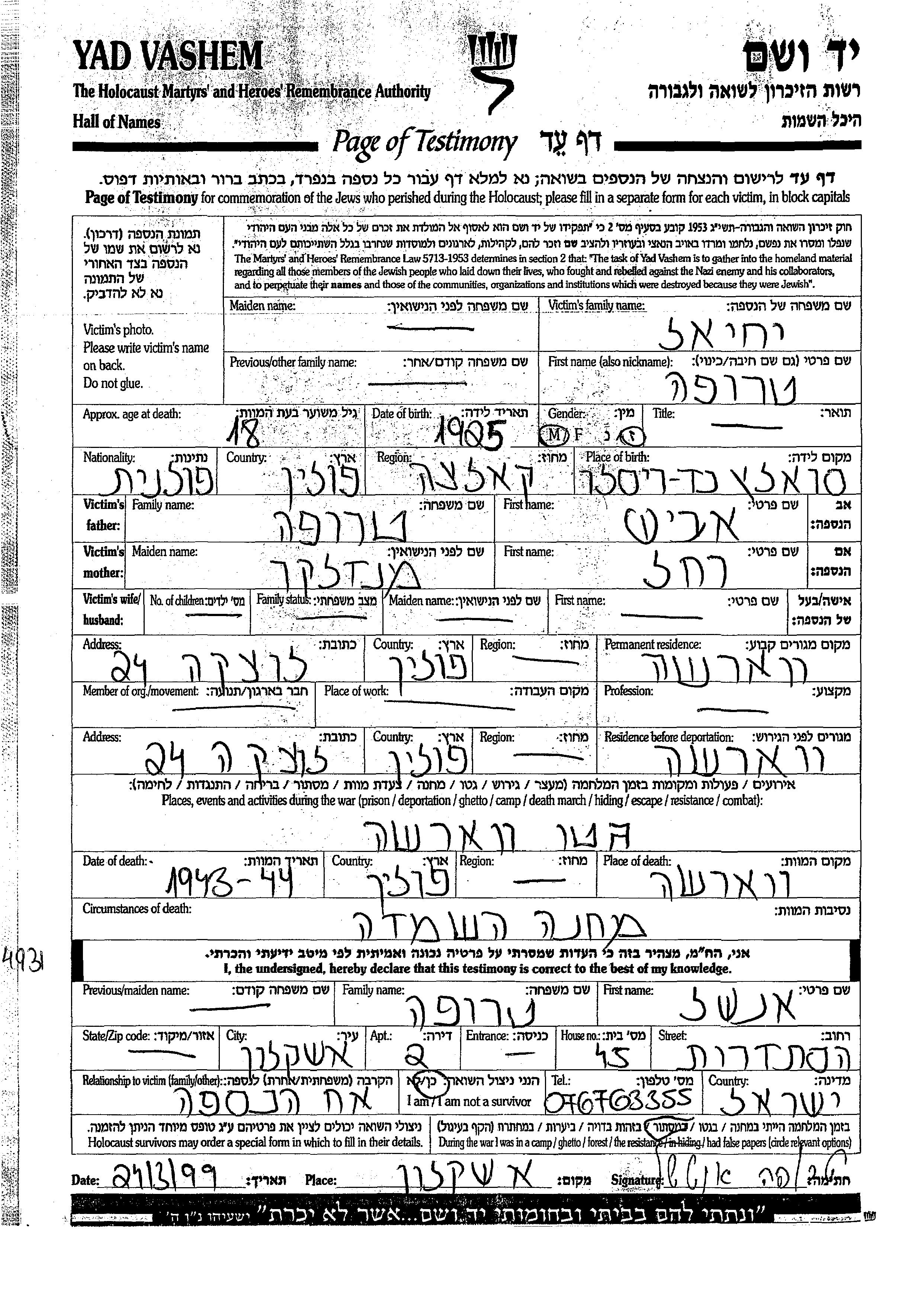 Yekhiel wurde in der Schoah ermordet. Todesort: Warsaw, Polen im Jahr 1943.