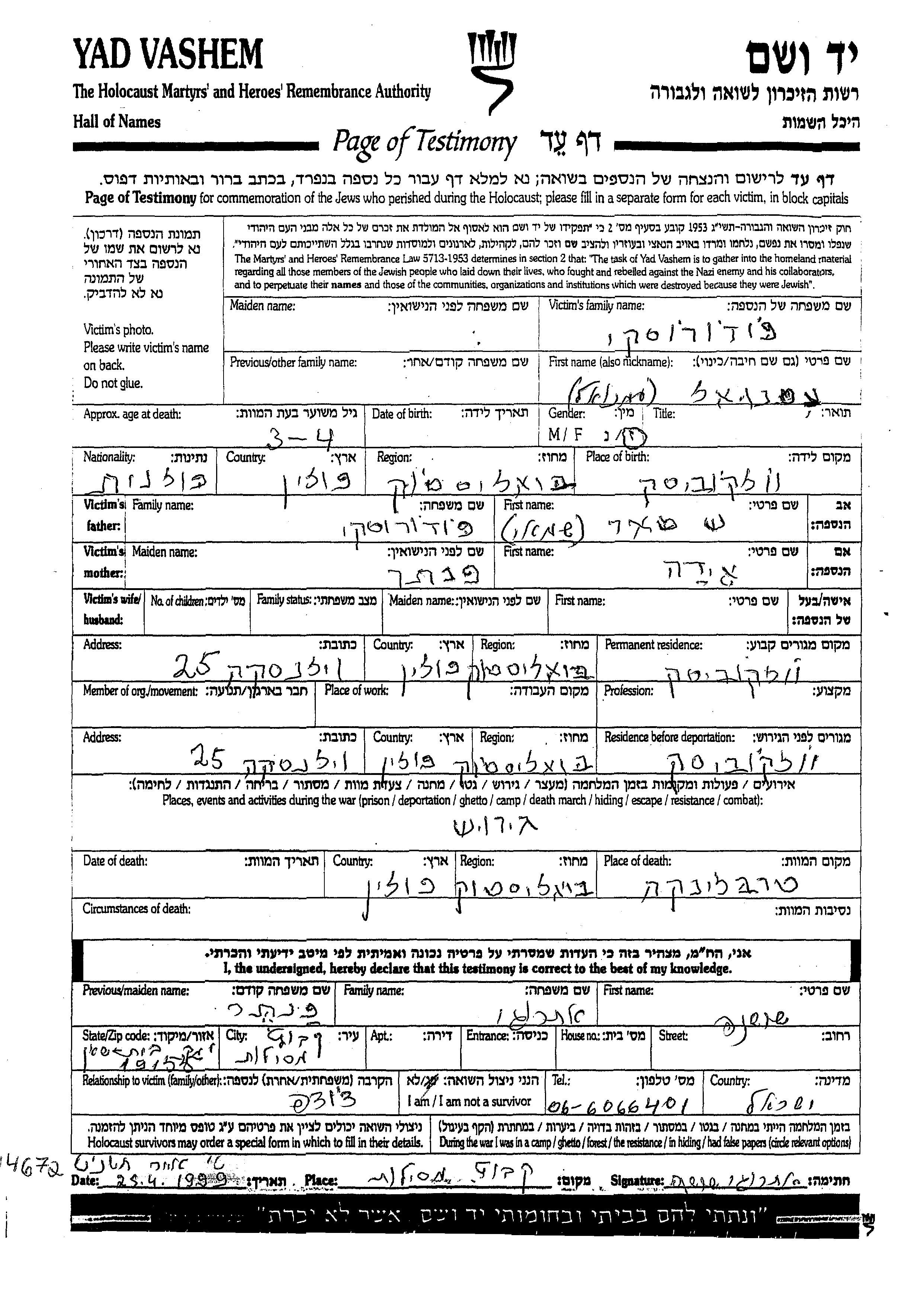 Emanuel wurde in der Schoah ermordet. Todesort: Treblinka, Polen.