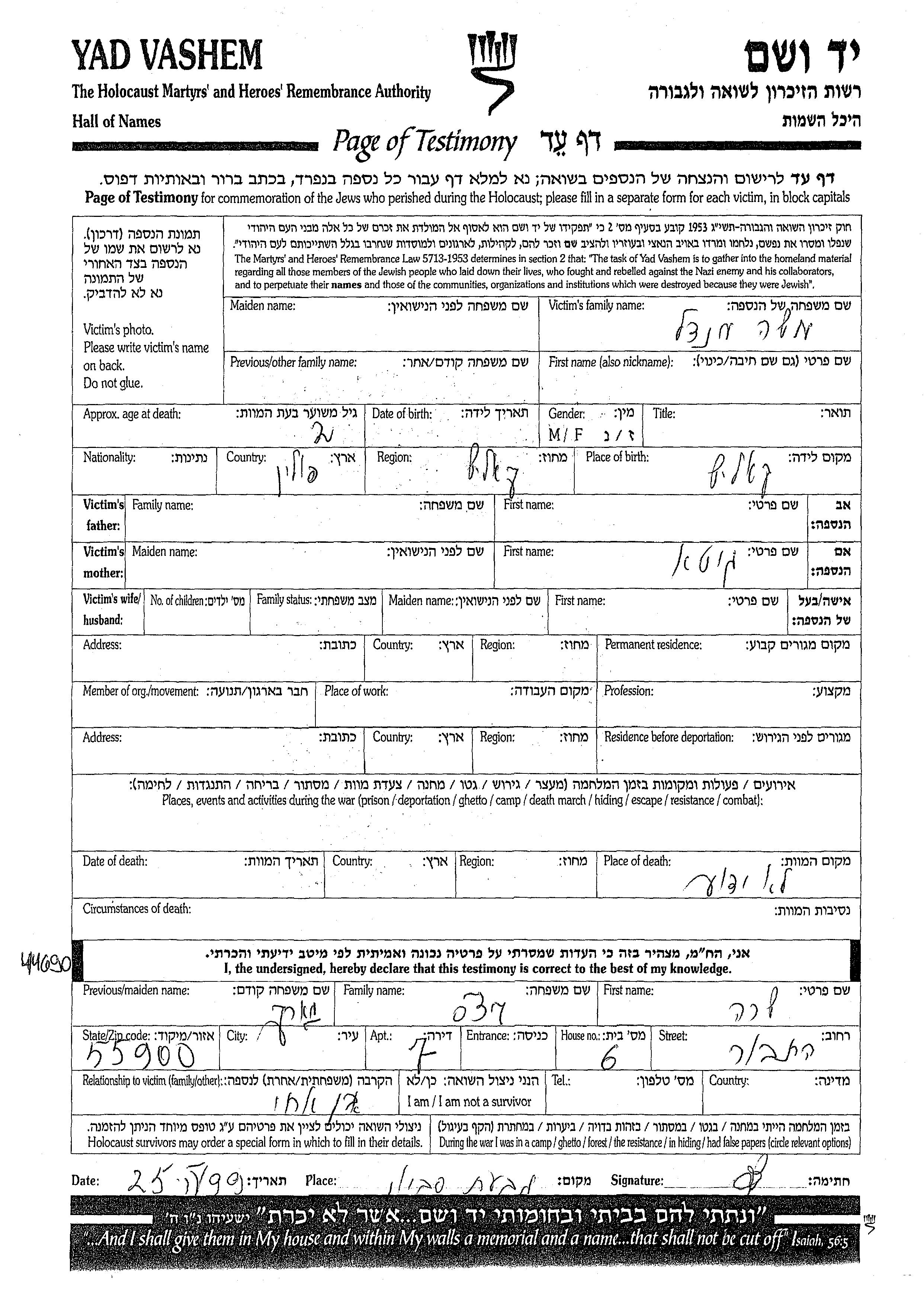 Mendel Moshe unbekannter Ort, Gedenkblatt