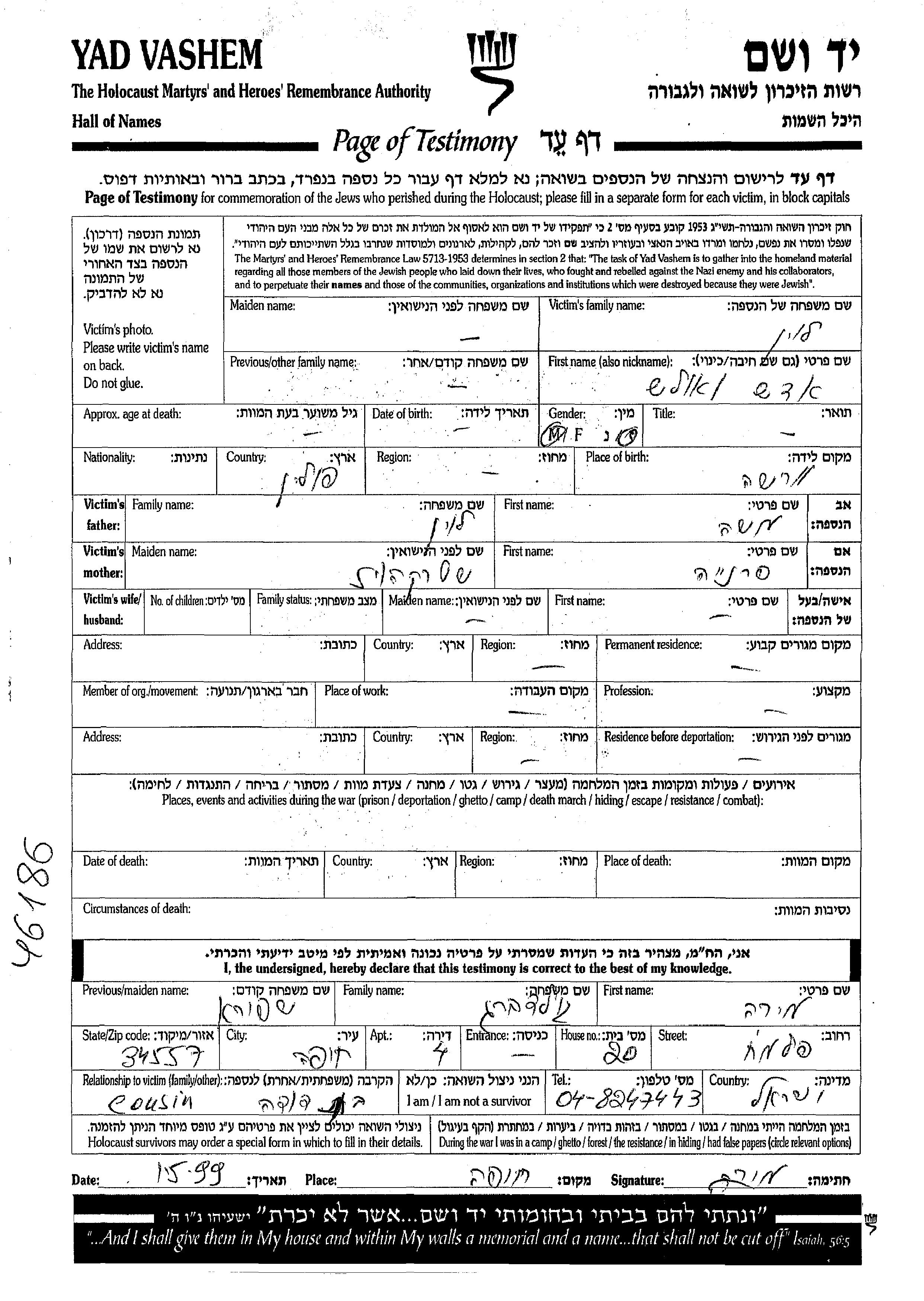 Yad Vashem - Gedenkblätter Sammlung
