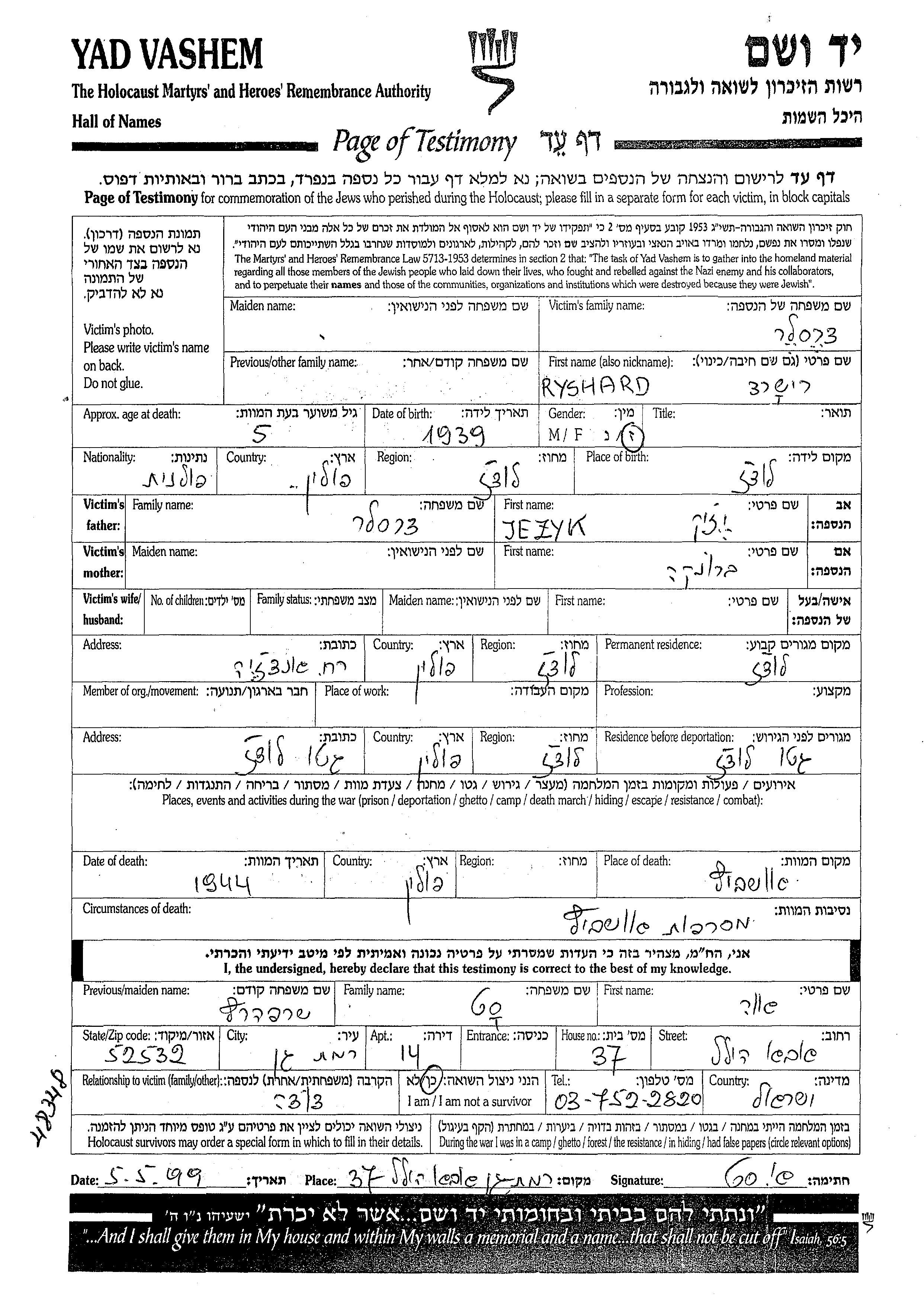 Richard wurde in der Schoah ermordet. Todesort: Auschwitz, Polen im Jahr 1944.
