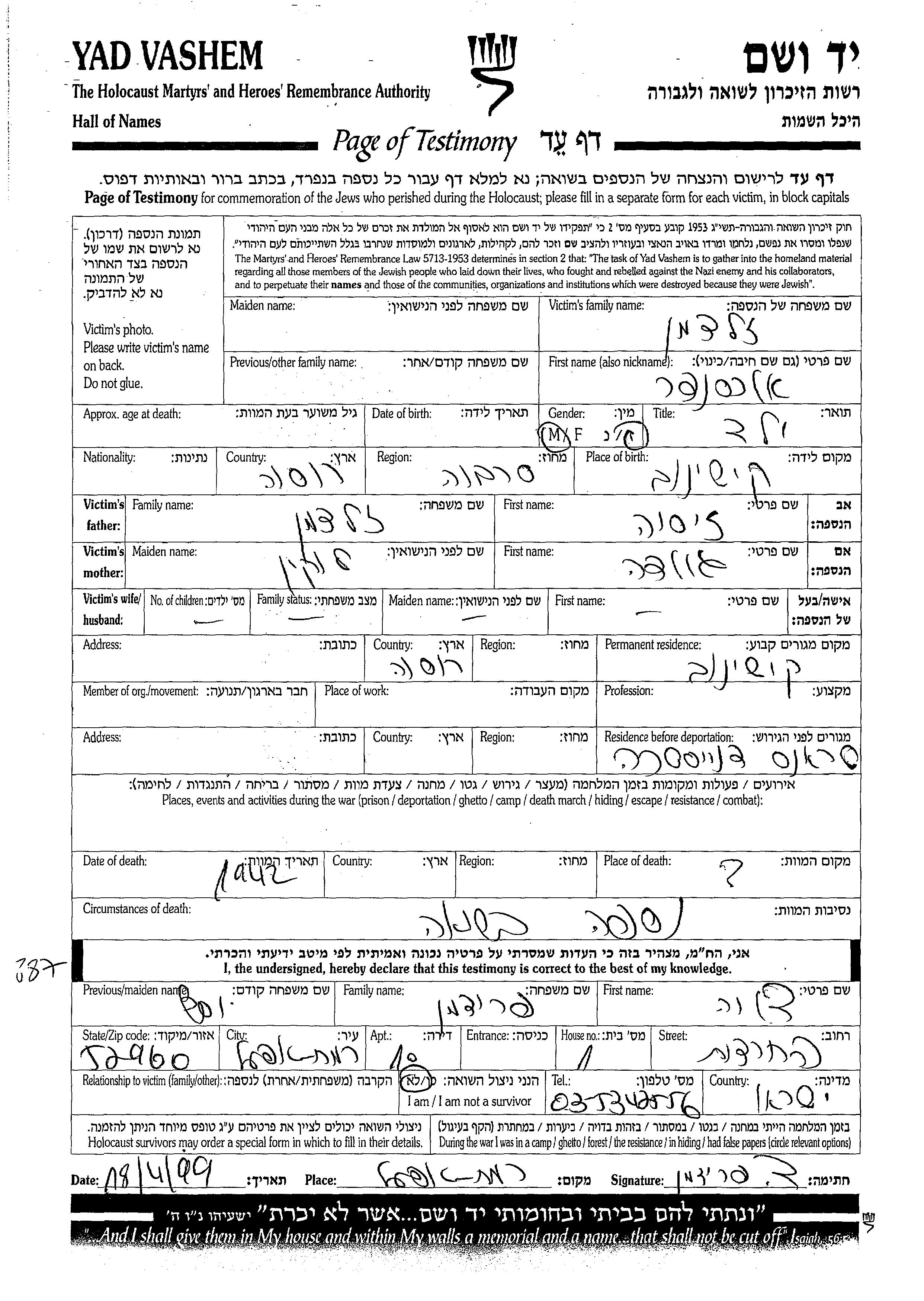 Aleksander wurde in der Schoah ermordet. Todesort: unbekannt im Jahr 1942.