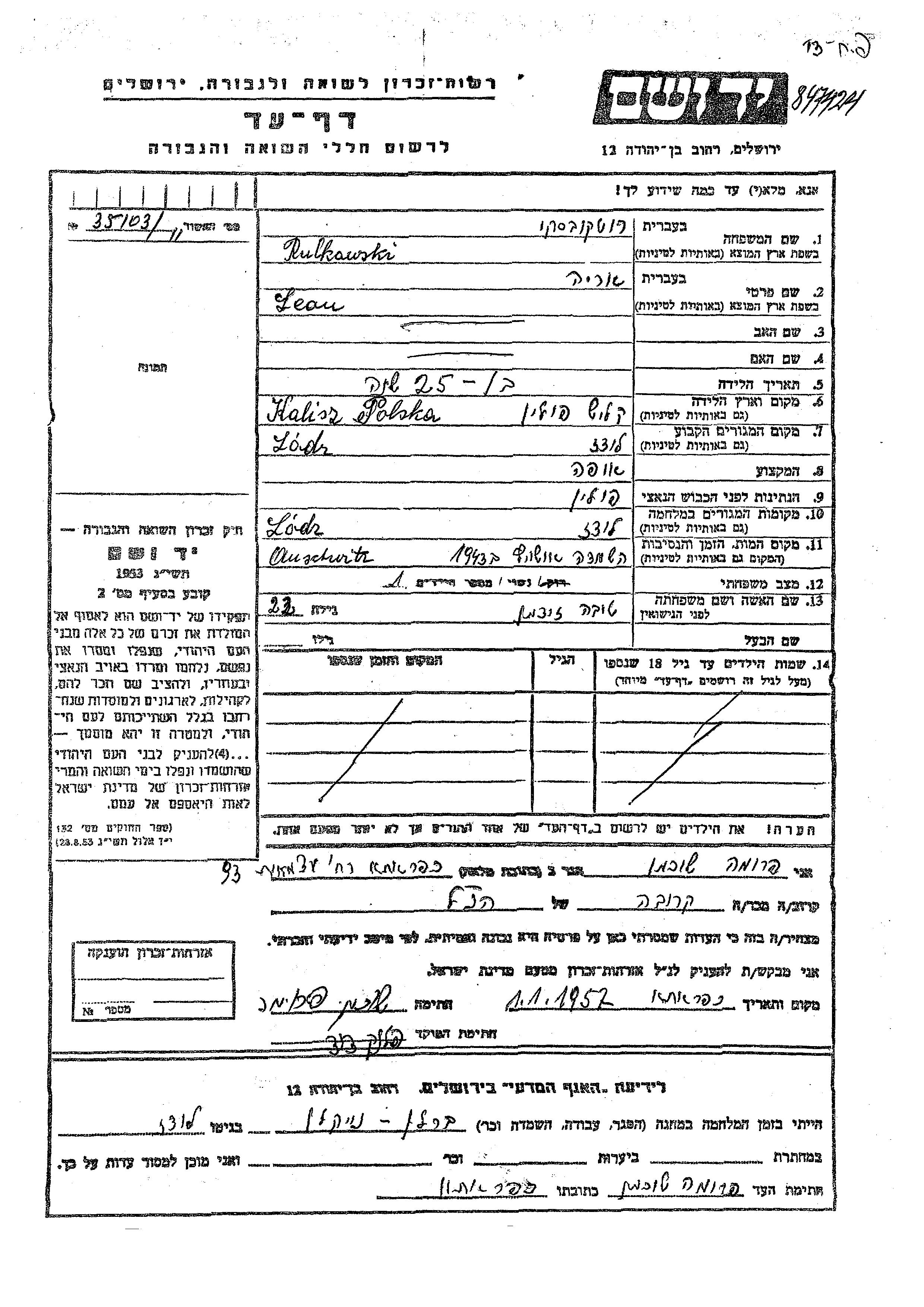 Leon Arie Rutkowski wurde in Kalisz, Polen geboren. Er war Bäcker/-in und mit Tova, geb. Zidman Verheiratet. Vor dem Zweiten Weltkrieg lebte er in Lodz, Polen. Während des Krieges war er in Lodz, Polen.