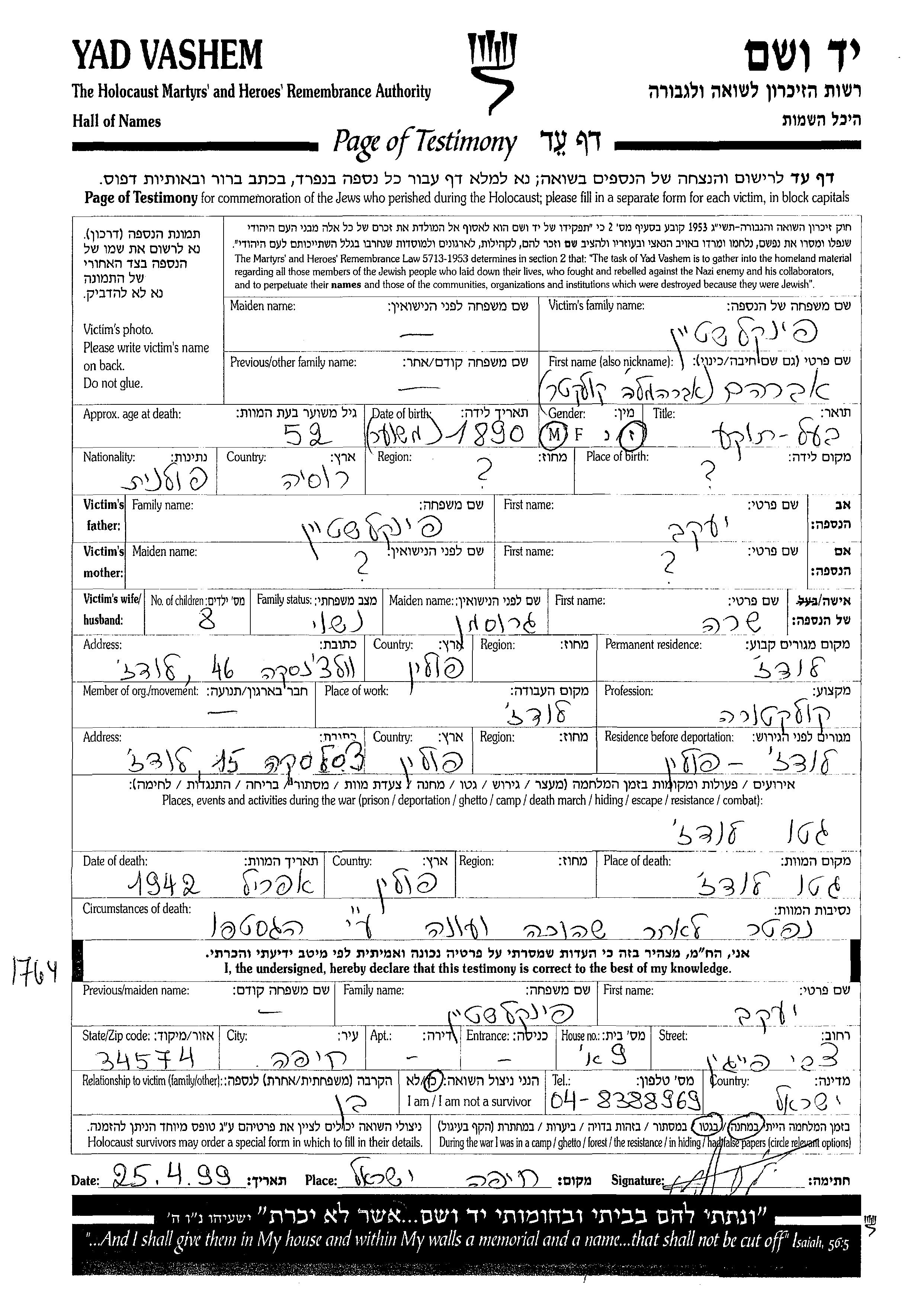 Shimon wurde in der Schoah ermordet. Todesort: Polen.