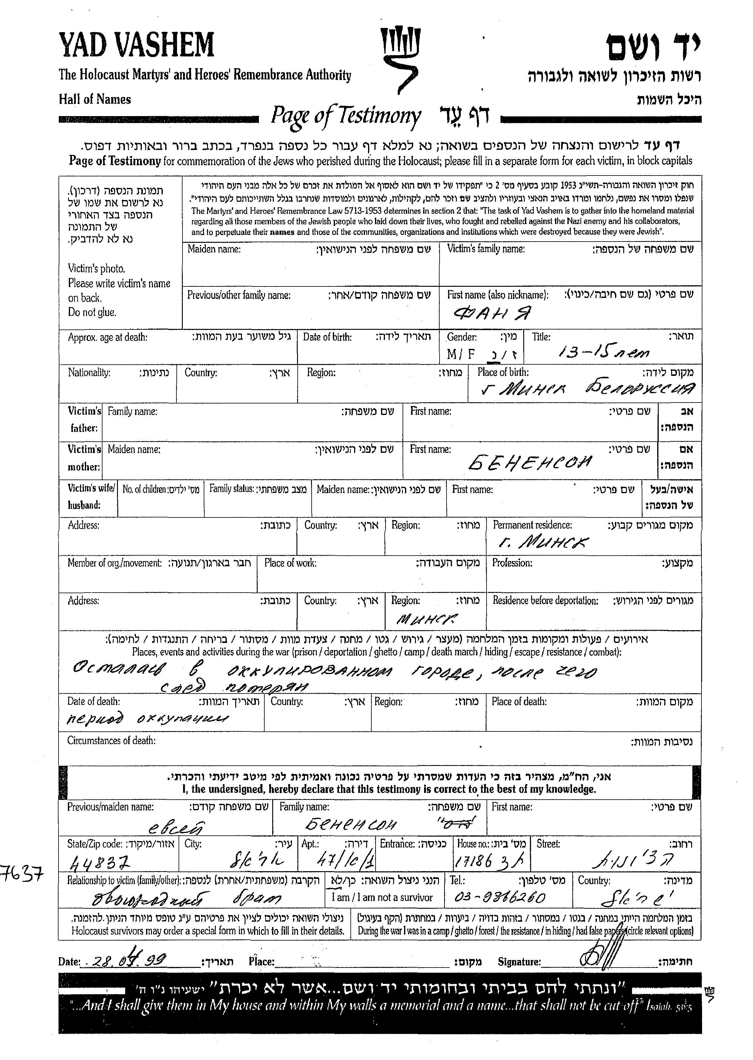 Fanya Name unbekannt wurde in Minsk, Weißrussland (UdSSR) geboren. Sie war Jugendliche/-r. Vor dem Zweiten Weltkrieg lebte sie in Minsk, Weißrussland (UdSSR). Während des Krieges war sie in Minsk, Weißrussland (UdSSR).