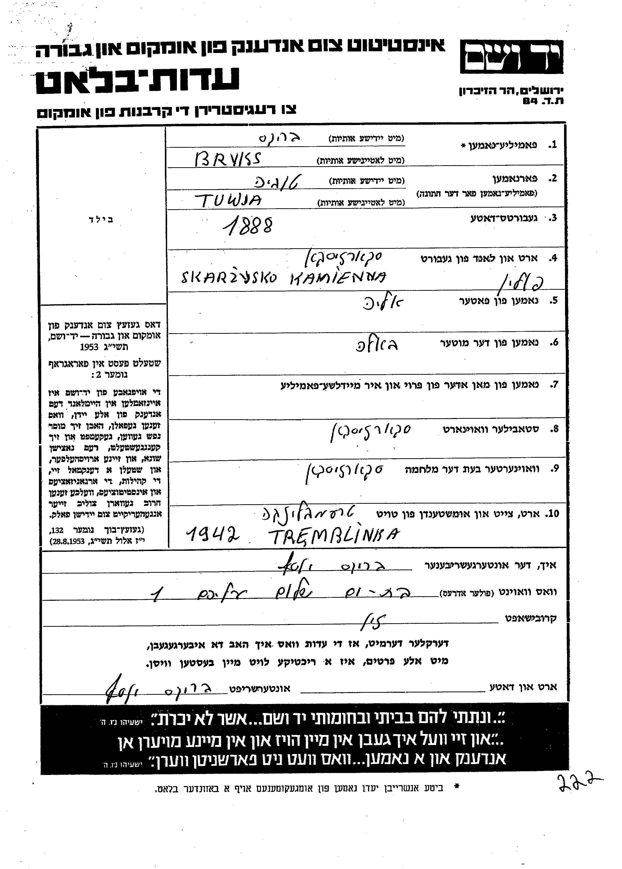 Bryks Tuvia 1888 Skarzysko Kamienna, Polen Gedenkblatt