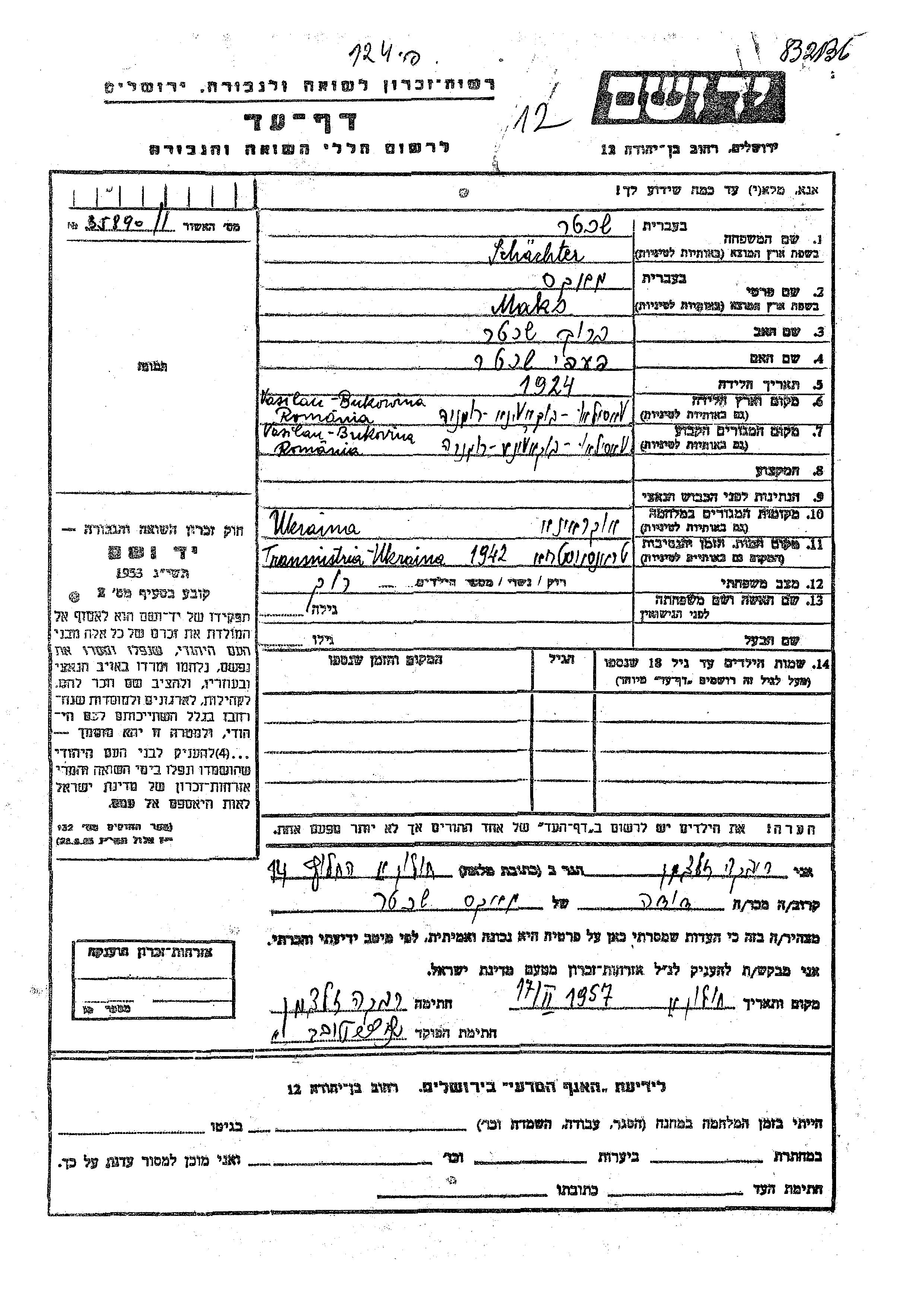 Max Schachter wurde im Jahr 1924 in Vasilau, Rumänien geboren. Er war der Sohn von Barukh und Pepi. Er war Ledig. Vor dem Zweiten Weltkrieg lebte er in Vasilau, Rumänien. Während des Krieges war er in Ukraine (UdSSR).