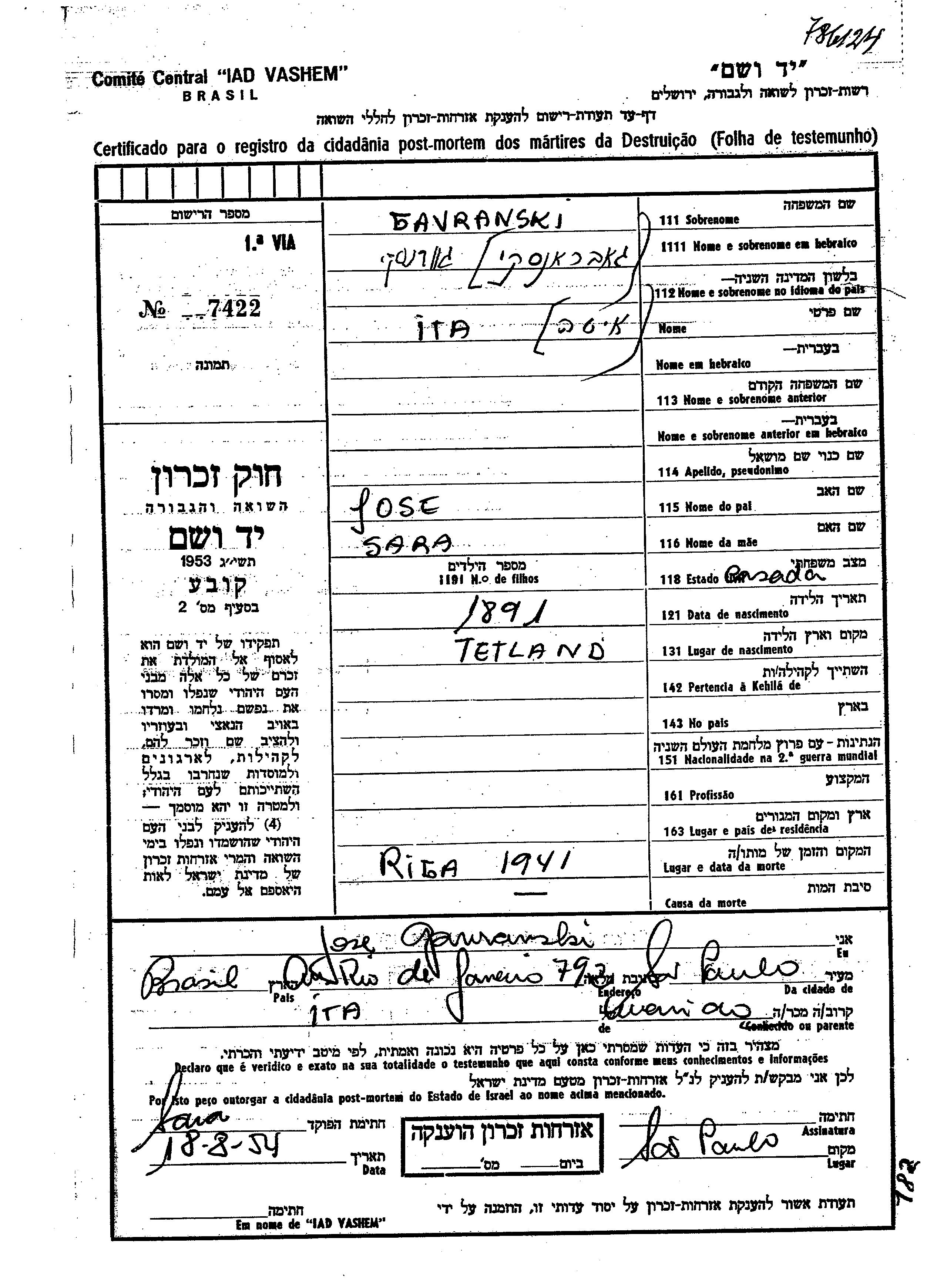 Ita Gavranski wurde im Jahr 1891 in Lettland geboren. Sie war die Tochter von Jose und Sara. Sie war Hausangestellte und Verheiratet.