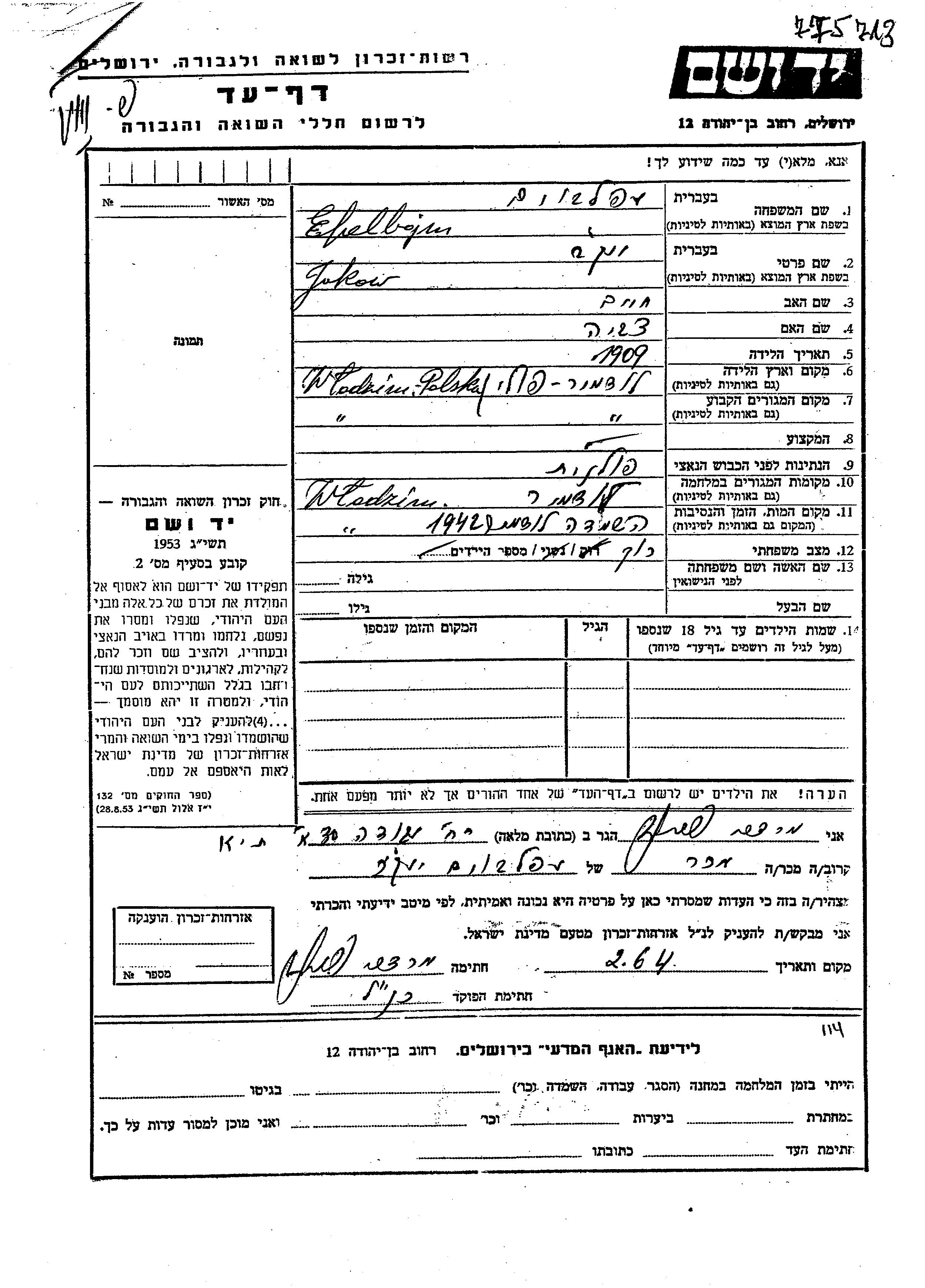 Yaakov wurde in der Schoah ermordet. Todesort: Wlodzimierz, Polen im Jahr 1942.