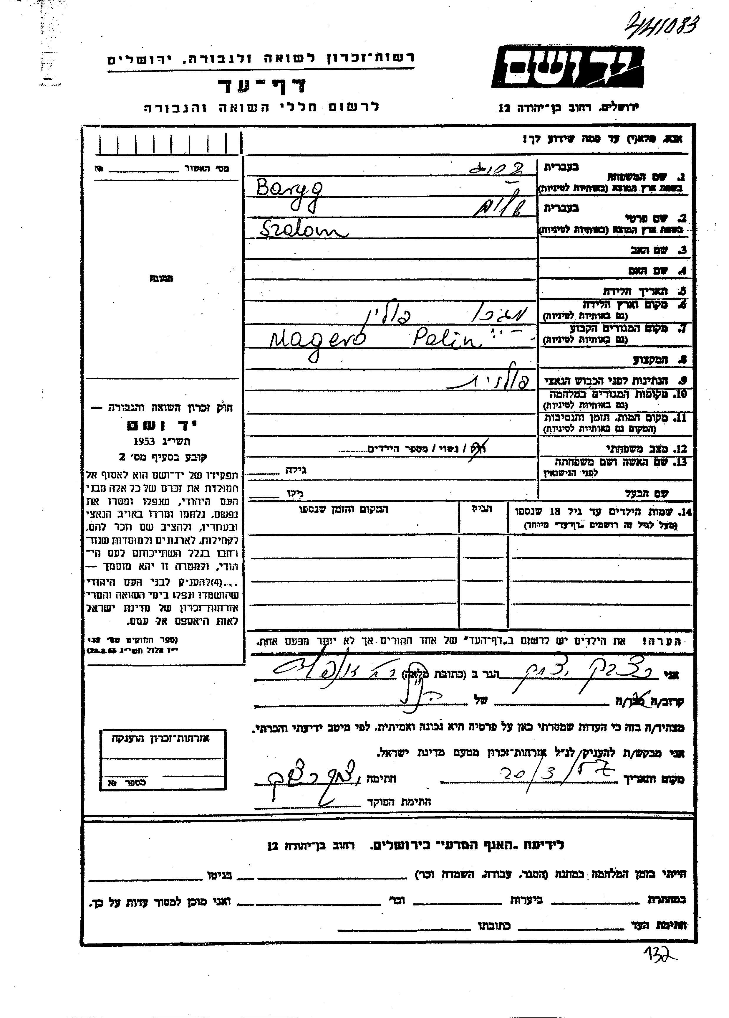 Baryg Brig Szalom Magerow, Polen Gedenkblatt