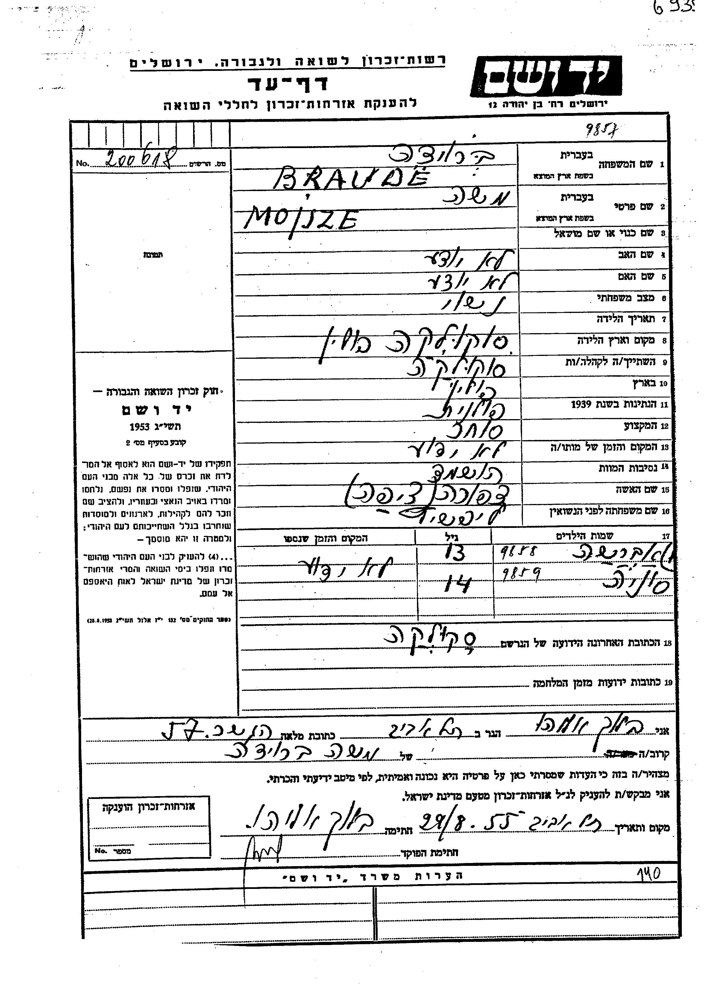 Broide Mojsze Sokolka, Polen Gedenkblatt