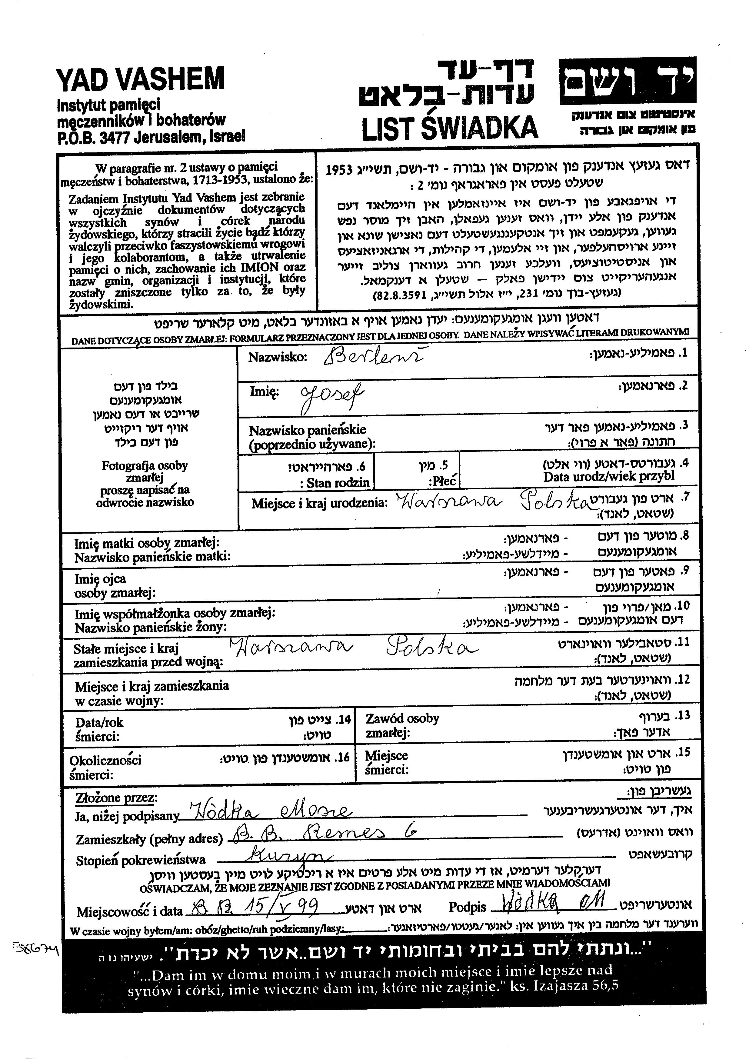 Berlewi Yosef Warszawa, Polen Gedenkblatt