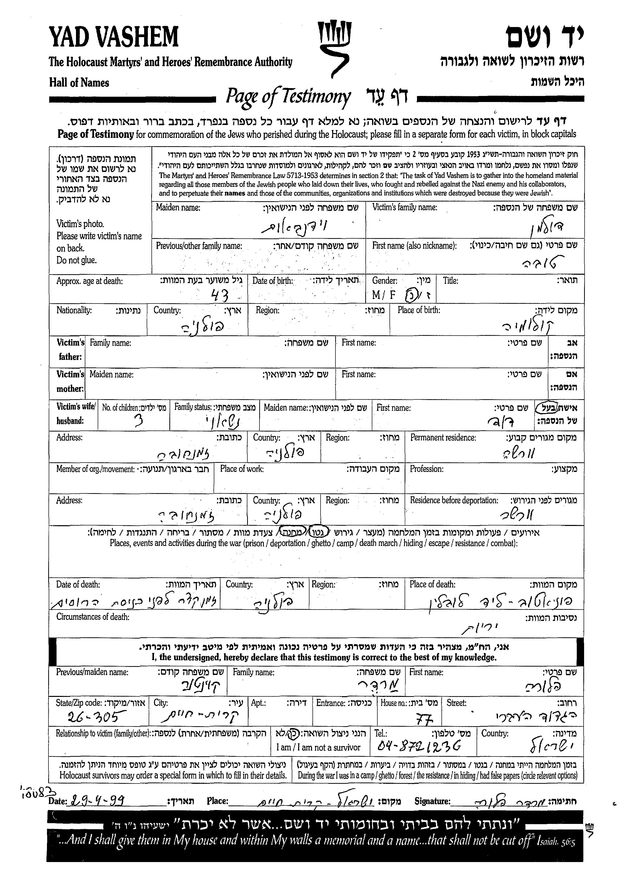 Tova wurde in der Schoah ermordet. Todesort: Poniatow, Polen im Jahr 1944.