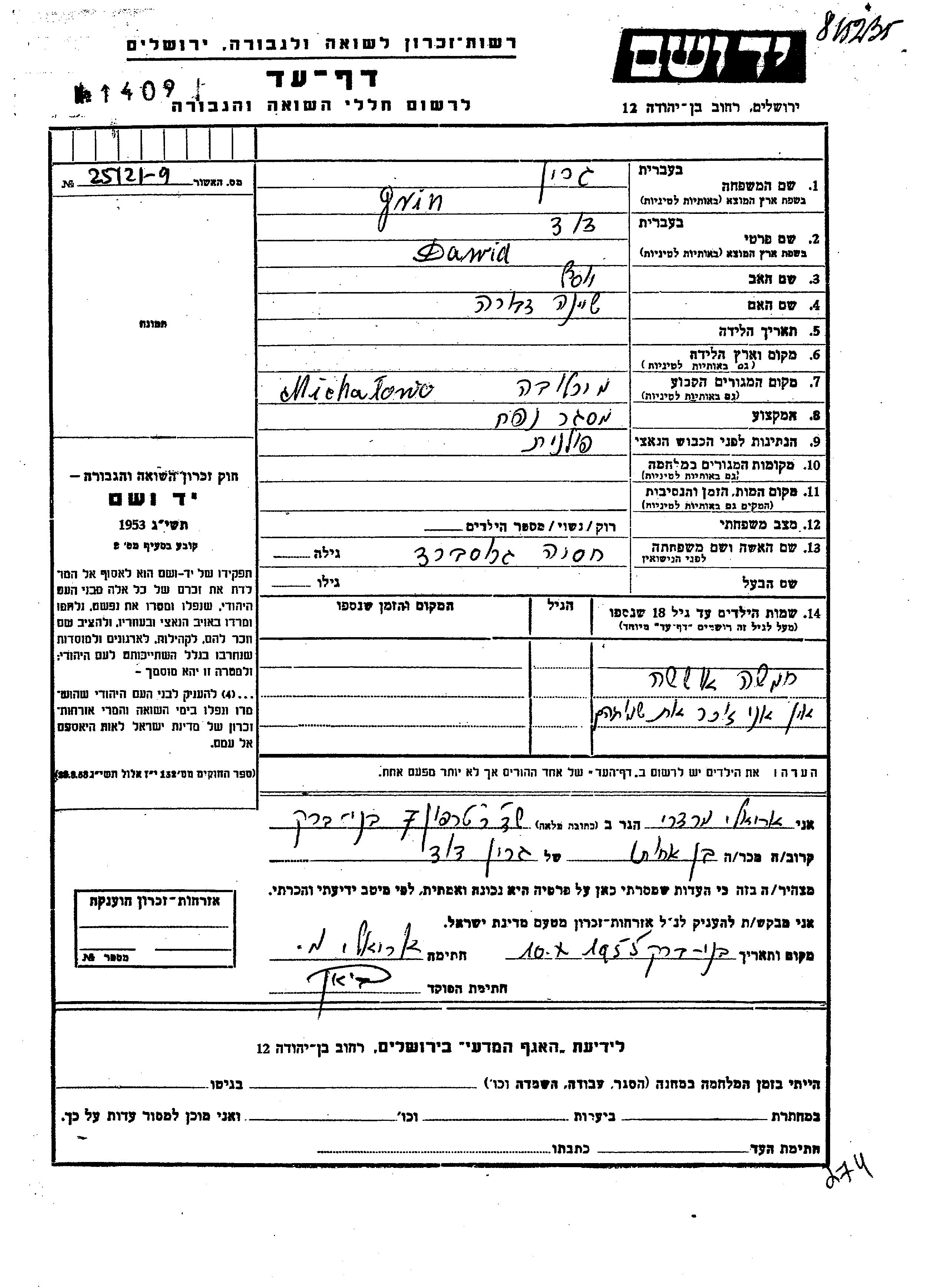 Dawid Grin wurde Er war der Sohn von Yosef und Sheina Dvora. Er war Schlosser. Vor dem Zweiten Weltkrieg lebte er in Michałowo, Polen.