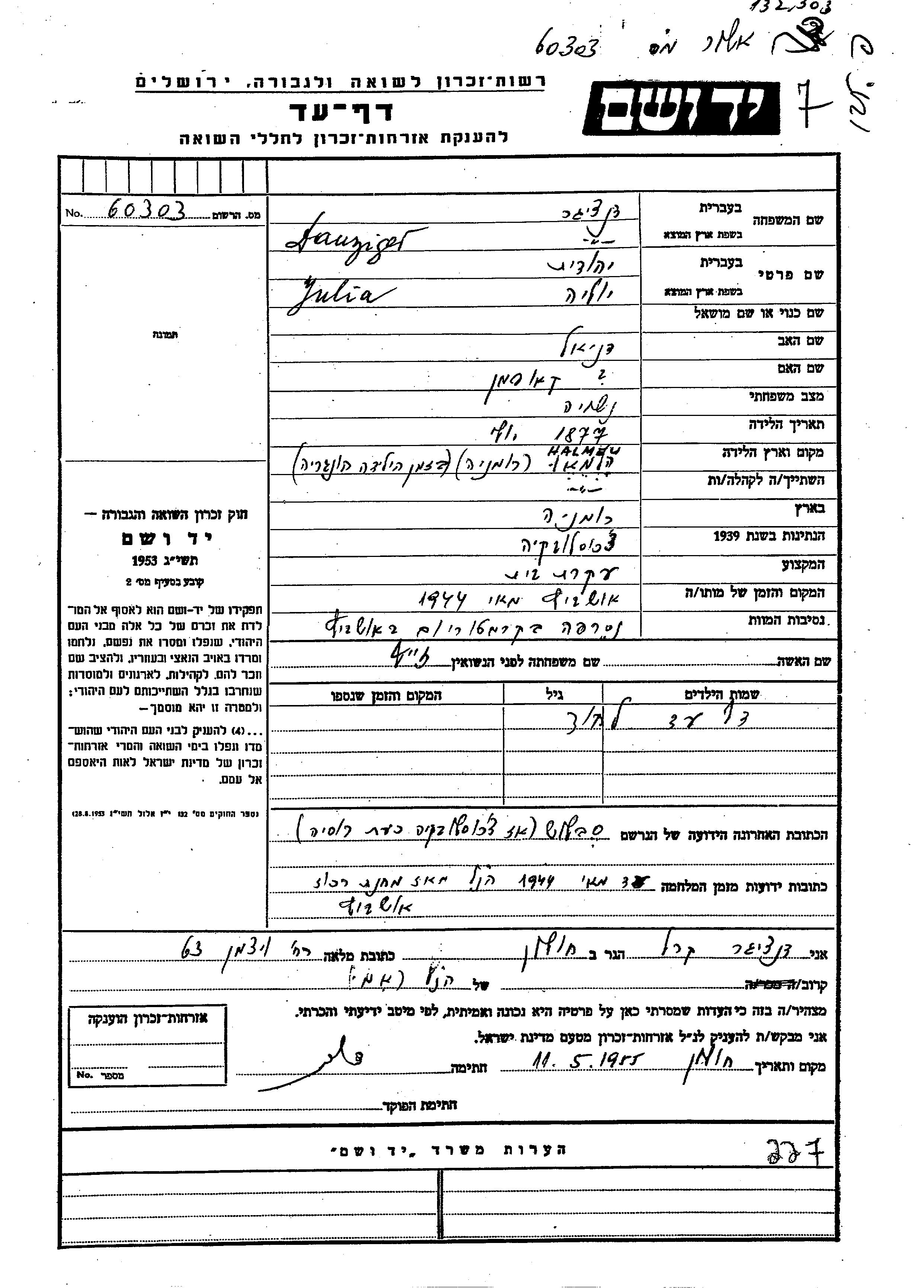 Yulia Yehudit wurde in der Schoah ermordet. Todesort: Auschwitz, Polen.