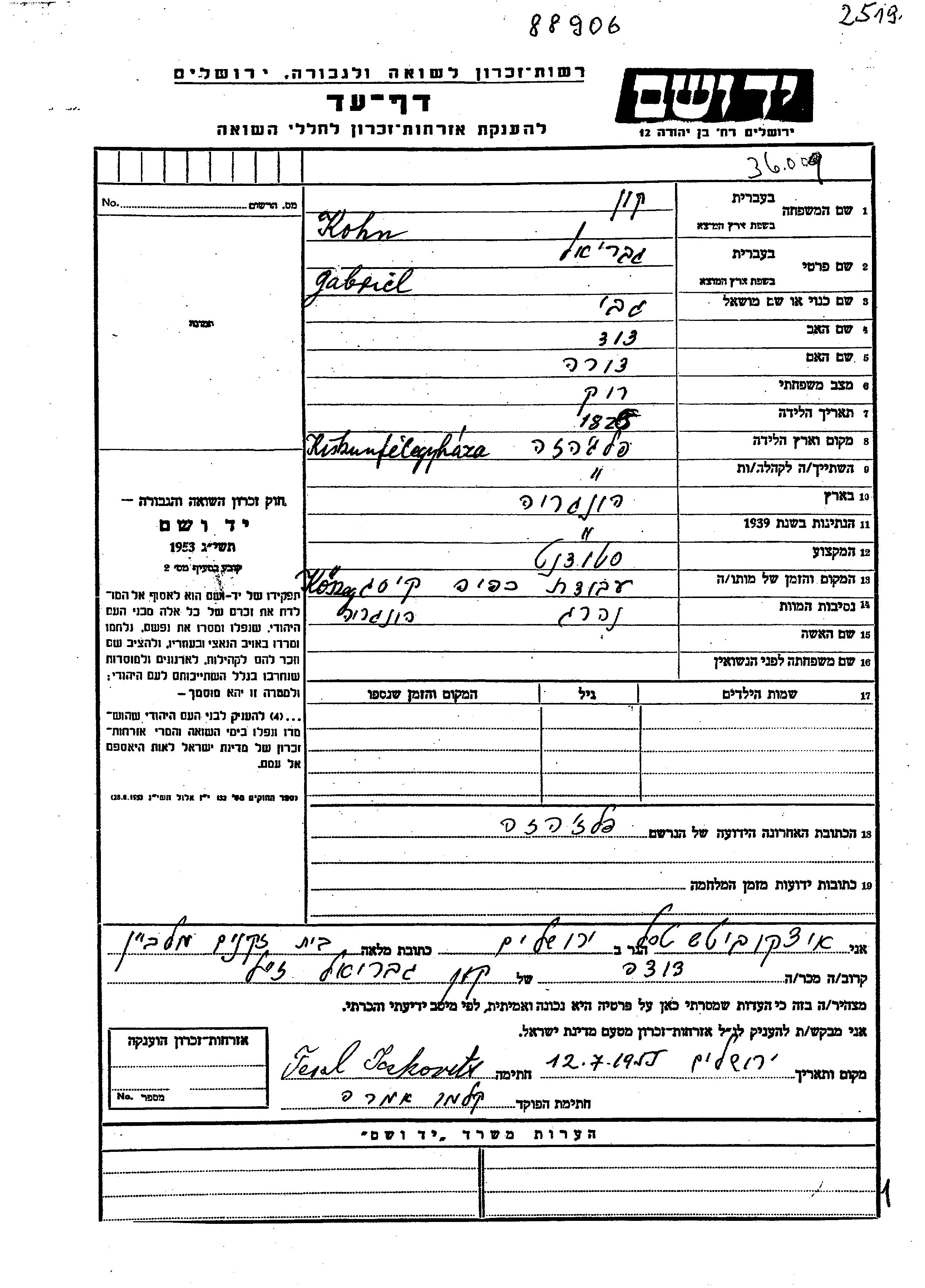 Gabriel wurde in der Schoah ermordet. Todesort: Koszeg, Ungarn.