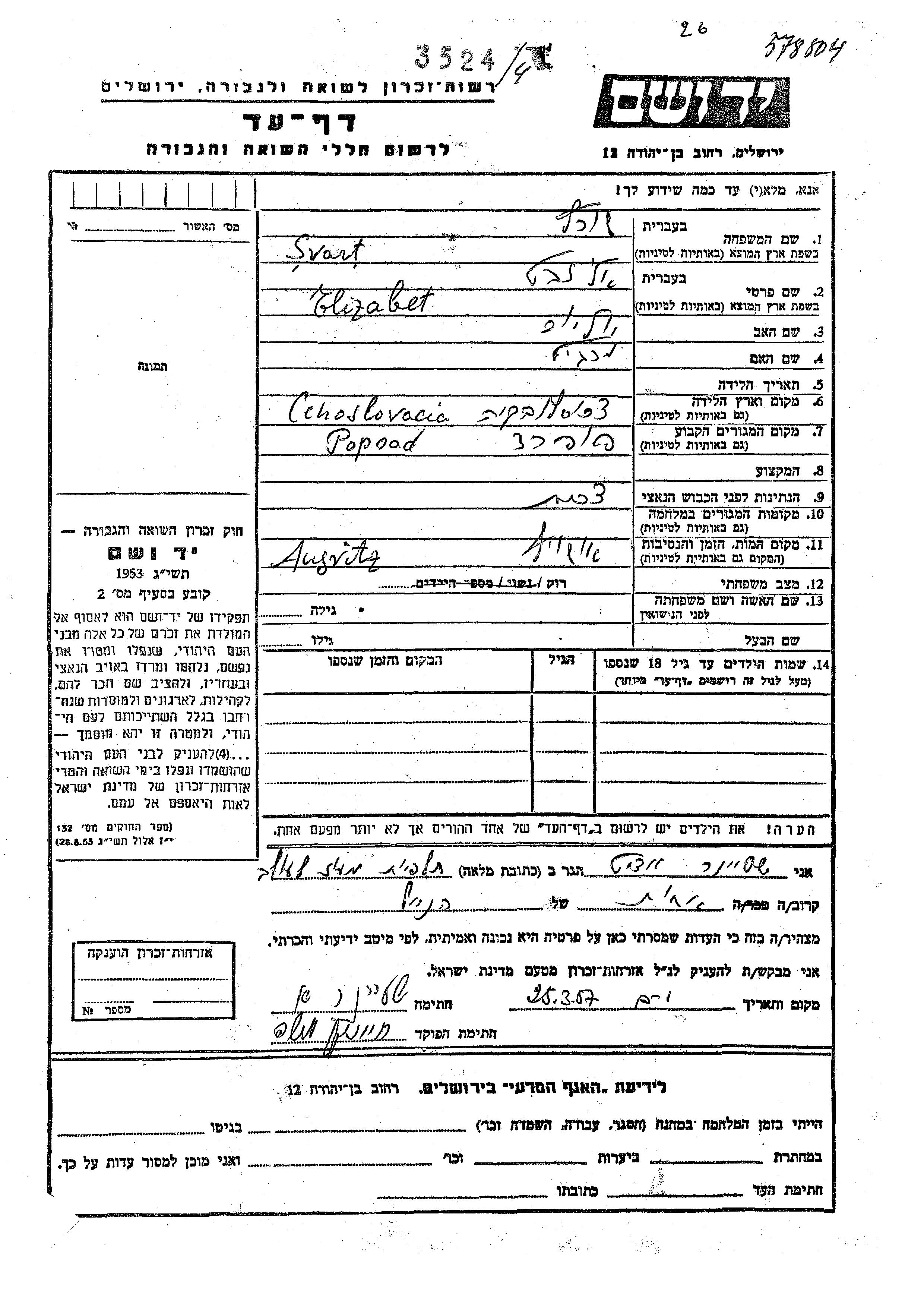 Elizabet wurde in der Schoah ermordet. Todesort: Auschwitz, Polen.
