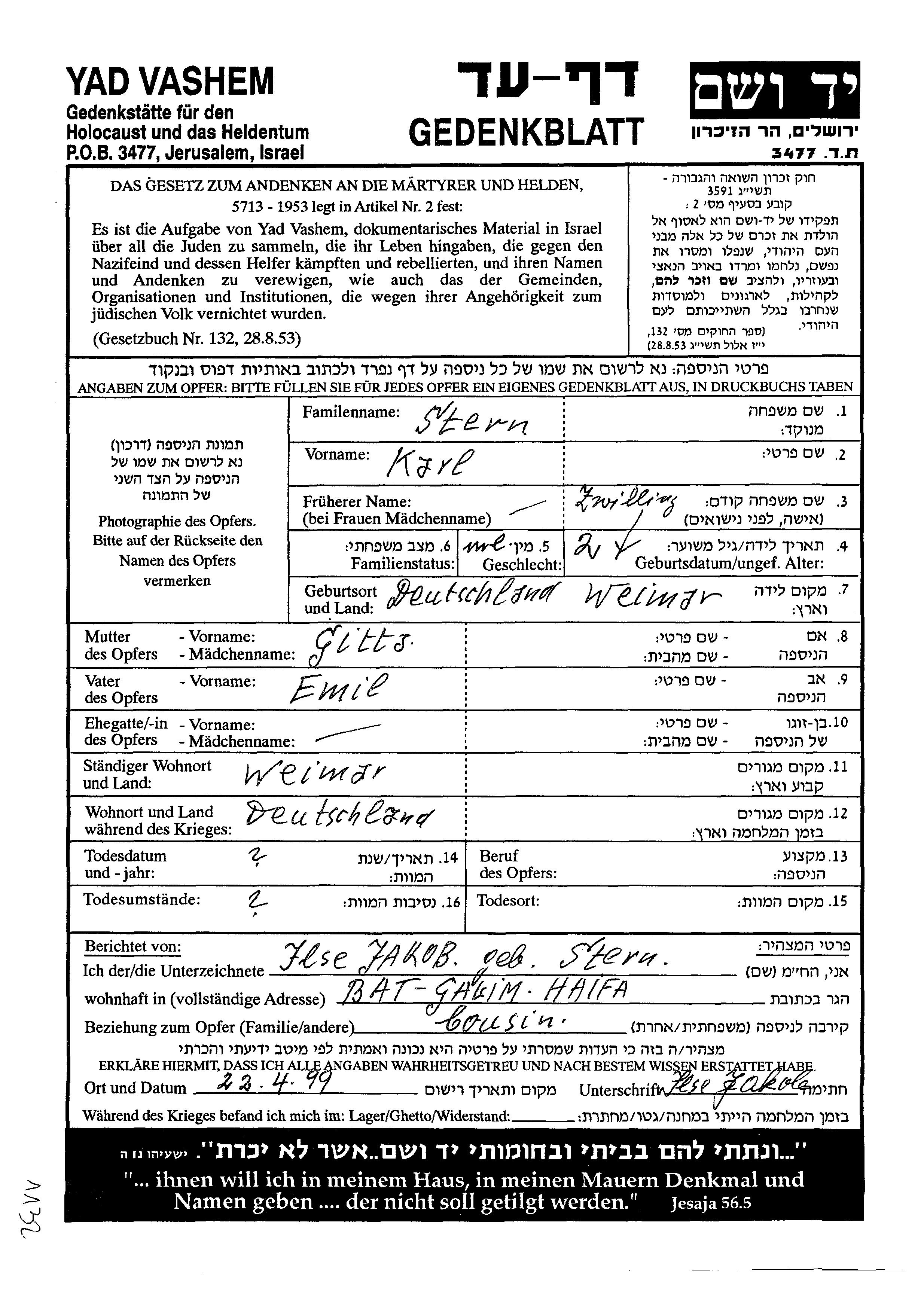 Karl Stern wurde in Weimar, Deutsches Reich geboren. Er war der Sohn von Emil und Gitta. Vor dem Zweiten Weltkrieg lebte er in Weimar, Deutsches Reich. Während des Krieges war er in Deutsches Reich.