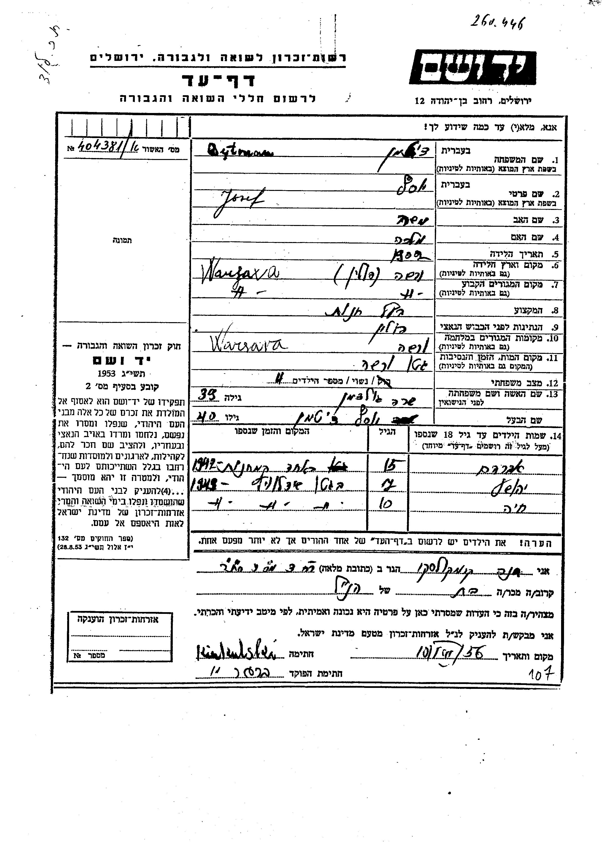 Yozef wurde in der Schoah ermordet. Todesort: Warsaw, Polen.