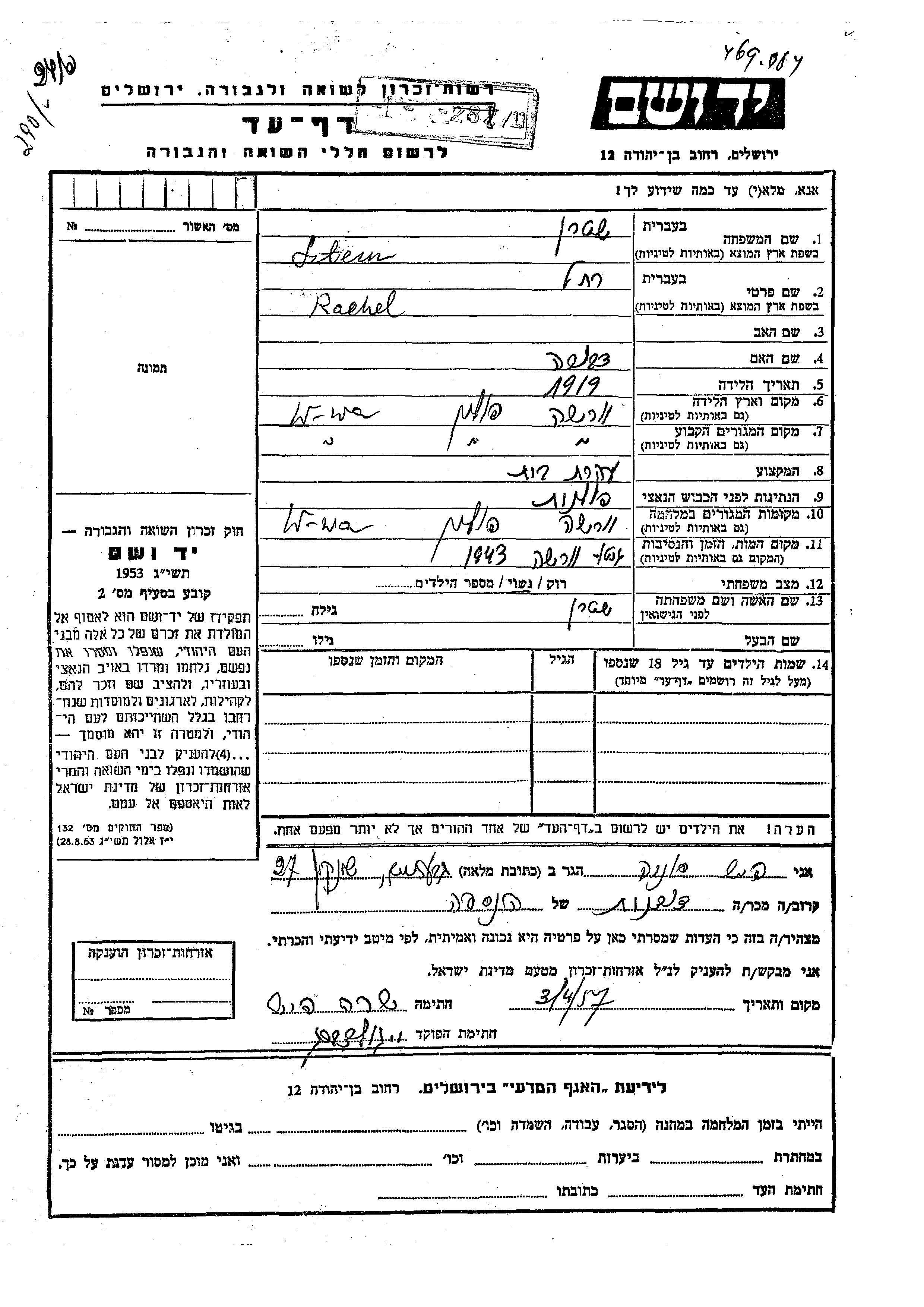 Rachel wurde in der Schoah ermordet. Todesort: Warszawa, Polen im Jahr 1943.
