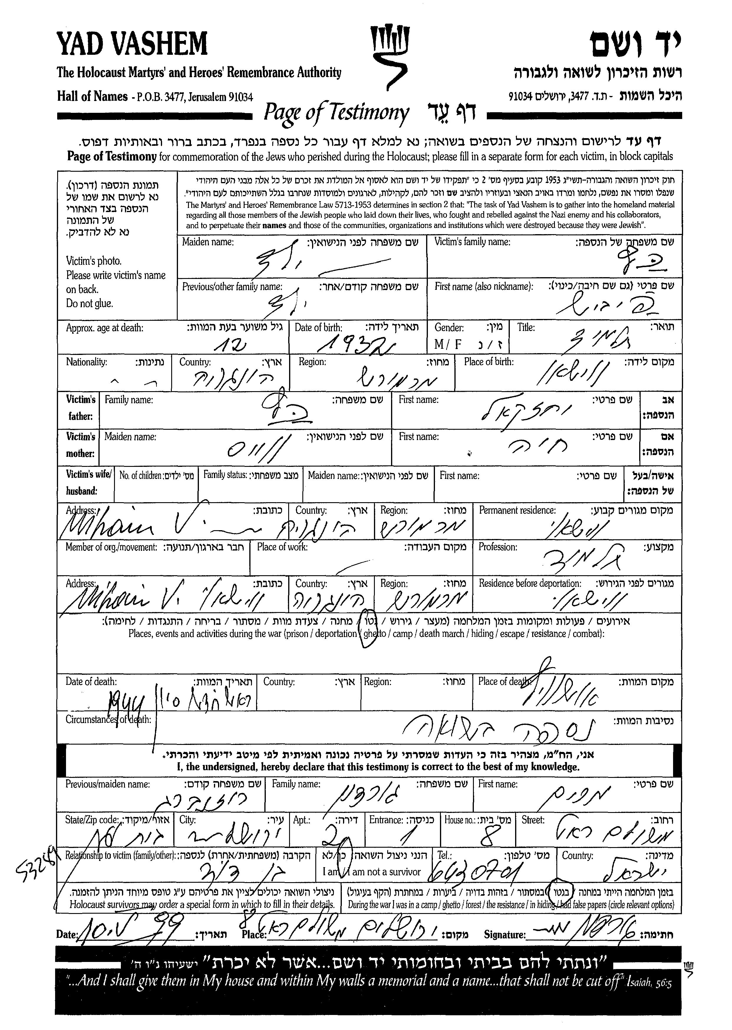 Fayvish wurde in der Schoah ermordet. Todesort: Auschwitz, Polen im Jahr 1944.