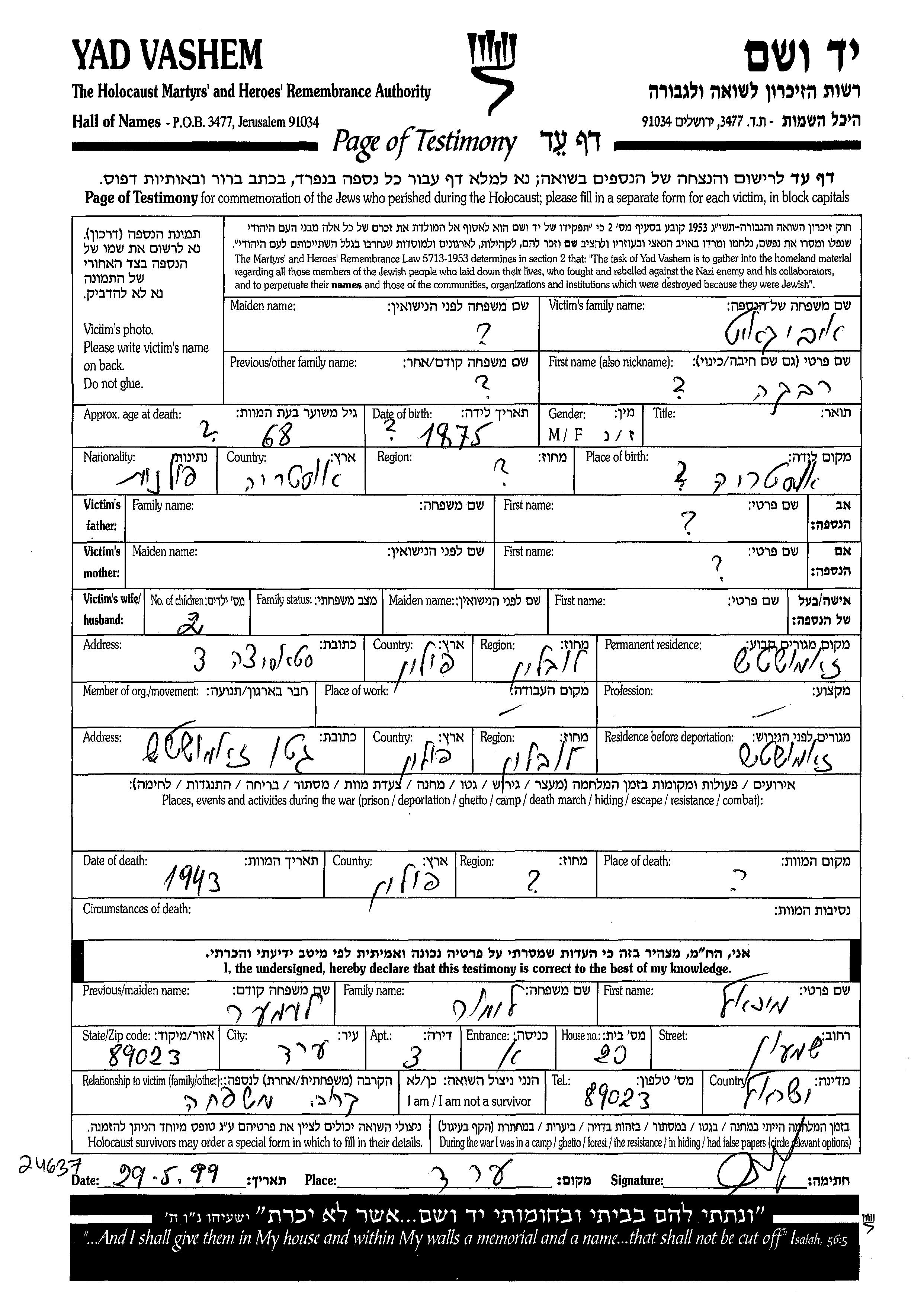 Rivka wurde in der Schoah ermordet. Todesort: Polen im Jahr 1943.