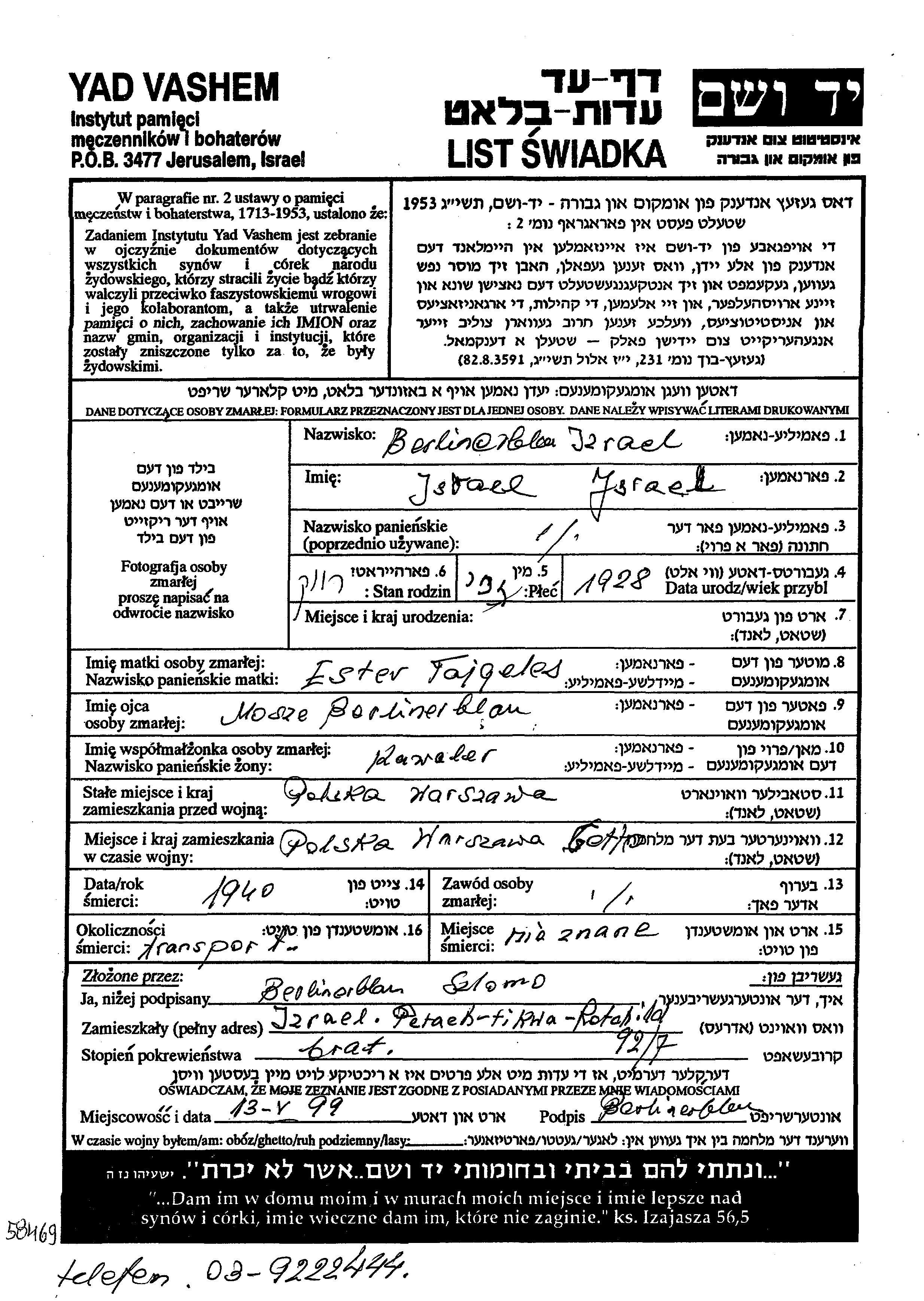 Suche nach einem Todesjahr im Zeitraum der Holocaust: 1933 bis 1945. Bitte wählen Sie 'Exakt' im Auswahlmenü, um nur nach einem einzelnen Jahr zu suchen, alternativ können Sie die flexibleren Optionen '+/- 2 Jahre' oder '+/- 5 Jahre' wählen.