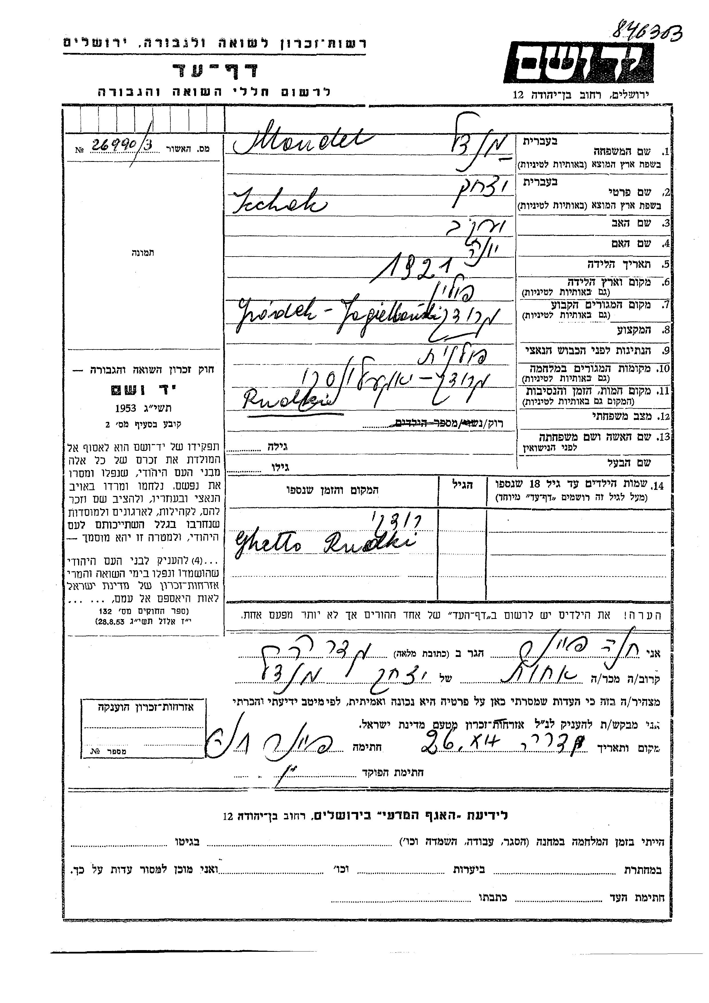 Ycchak wurde in der Schoah ermordet. Todesort: Rudki, Polen.