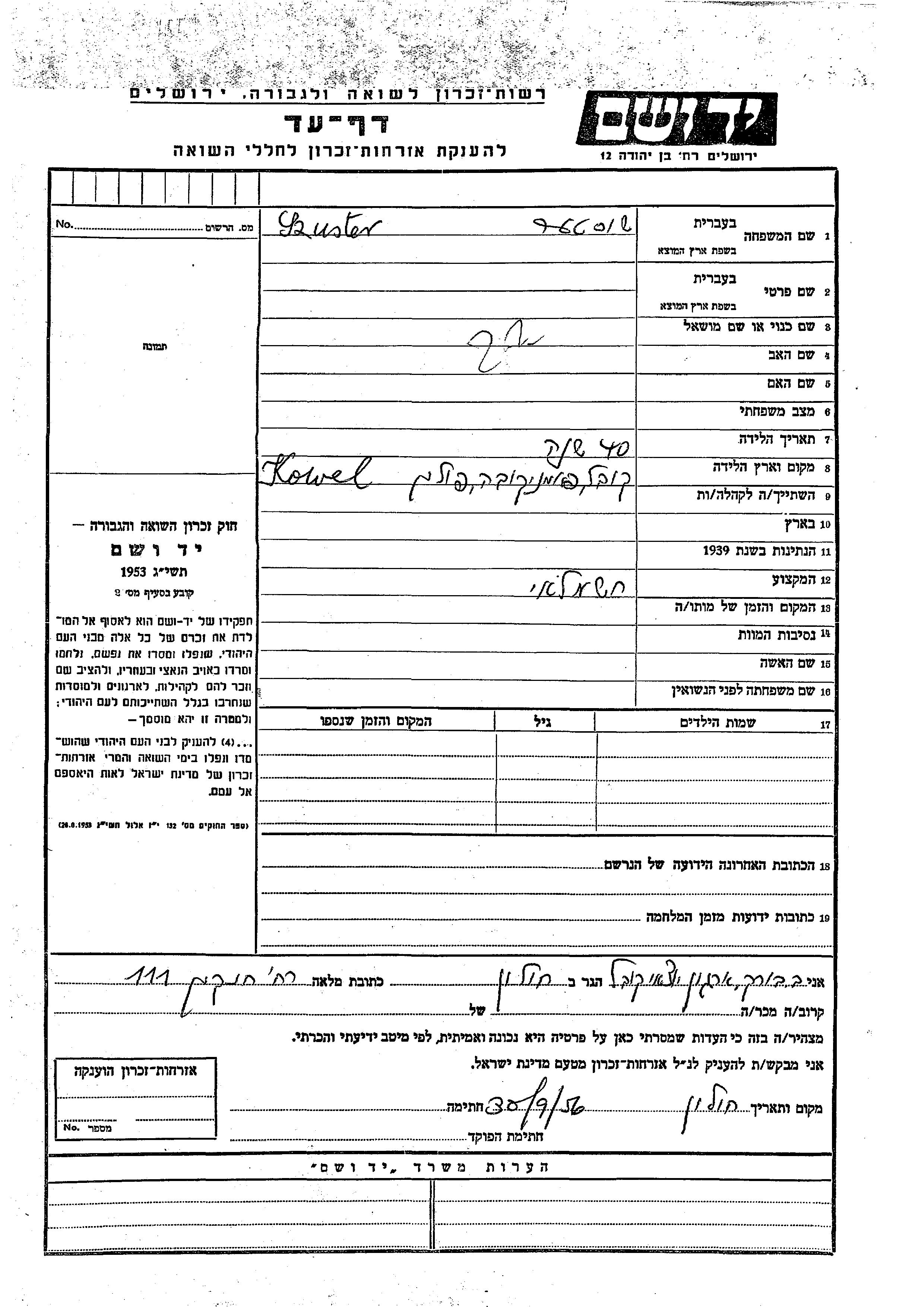 Vorname unbekannt Szuster wurde in Kowel, Polen geboren. Er/Sie war Elektriker/-in.