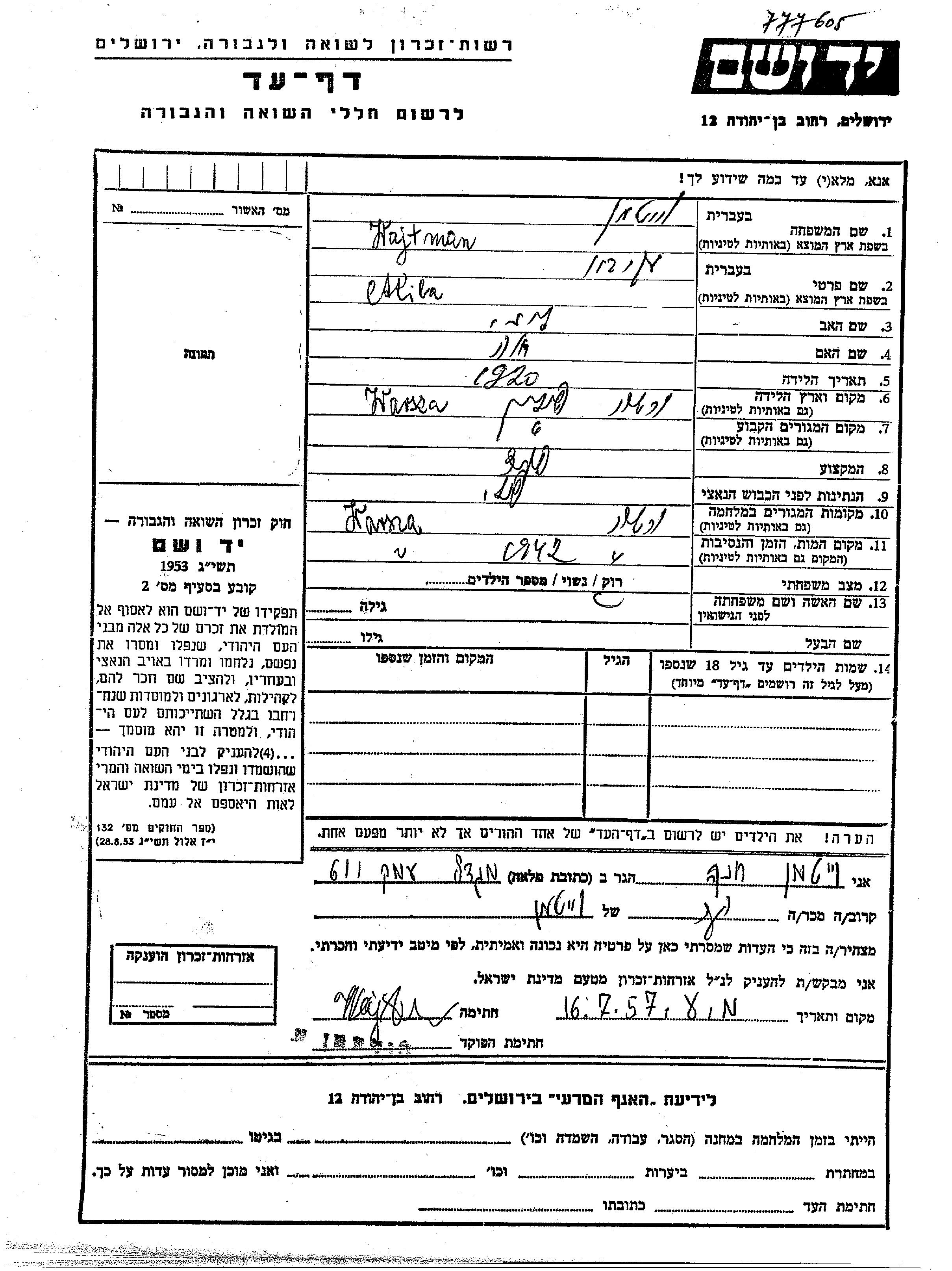 Akiba Wajtman wurde im Jahr 1920 in Varsha, Polen geboren. Er war der Sohn von Khava. Er war Angestellte/-r und Ledig. Vor dem Zweiten Weltkrieg lebte er in Varsha, Polen. Während des Krieges war er in Varsha, Polen.